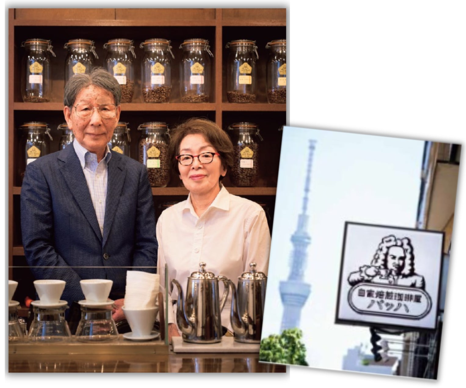 1968 年、文子さんの実家の地、東京・山谷に夫婦で喫茶店を開店、72年から自家焙煎を始める。護さんはコーヒー界きっての理論派で、著書も多数。85歳をすぎた今も、日々後進の指導にあたり、日本全国に「正しいコーヒー」を伝え続けている。文子さんは90年に立ち上げた製菓・製パン部門を指揮し、コーヒーの相棒であるお菓子とパンの研究に余念がない。2人の趣味は、出会いのきっかけでもあるクラシック音楽の鑑賞と演奏。