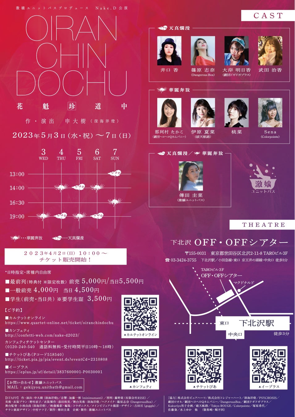 激しいお嬢(=女優)が集まる演劇ユニット「激嬢ユニットバス」 傳田圭菜主宰で再始動 Nake.D公演『花魁珍道中』上演決定 カンフェティでチケット発売