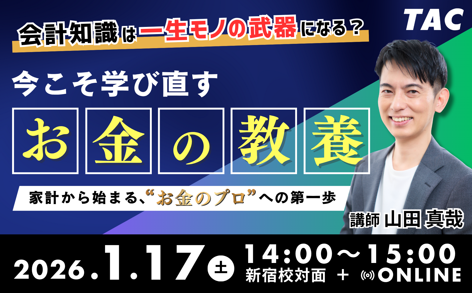 【登録者110万人超】日本トップクラス会計士YouTuber直伝!「今こそ学び直す"お金の教養"」1/17(土) 資格の学校TAC開催