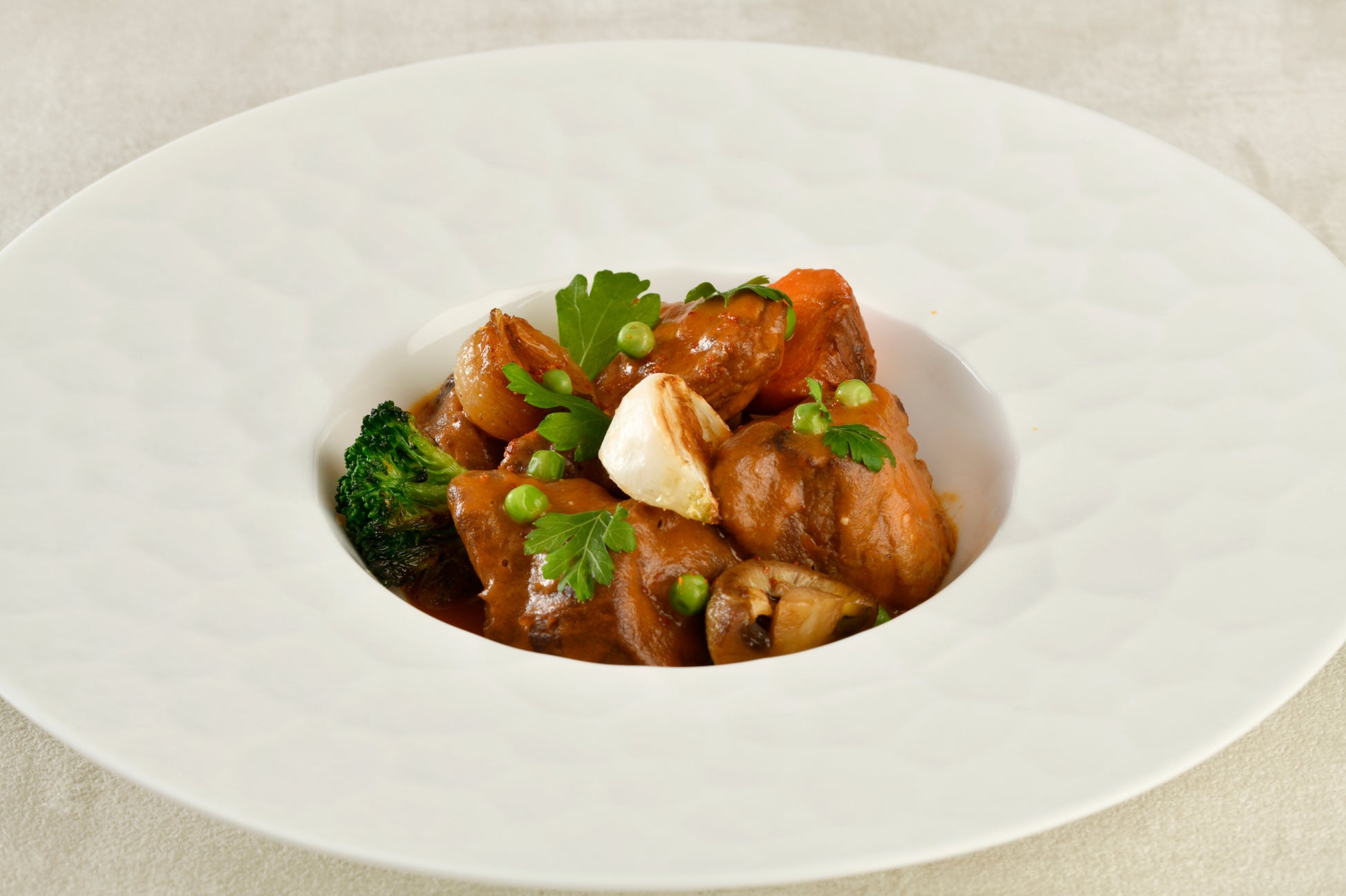 メインディッシュチョイスのメイン料理では、アキテーヌ地方の郷土料理である「ナヴァラン・ダニヨー ピマンデスプレット風味」や、伝統料理「鴨のコンフィ サルラ風ジャガイモ添え」など、多彩なメニューよりお選びいただけます。フルコースでは肉の上品な甘さと旨味を伝統のソースで味わう「牛フィレのグリル マデラソース 野菜添え」をご用意しました。また、西海岸エリアを代表するボルドーやロワールの各種ワインもご用意、お食事とのマリアージュをお楽しみいただけます。フランスの豊かな食文化と大地の恵みを存分にご堪能いただける美食のひとときを、店内から臨む雄大な景色とともに、どうぞごゆっくりご堪能ください。