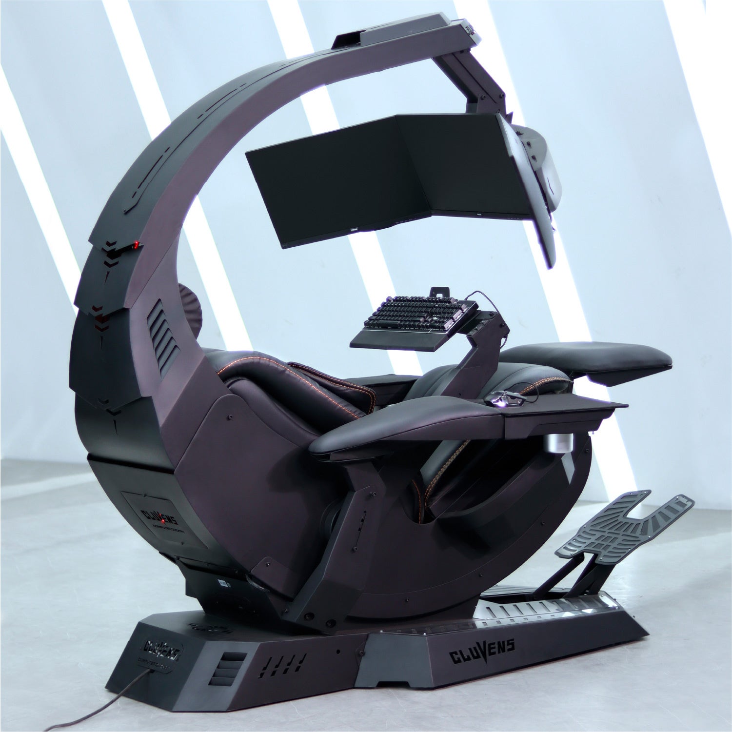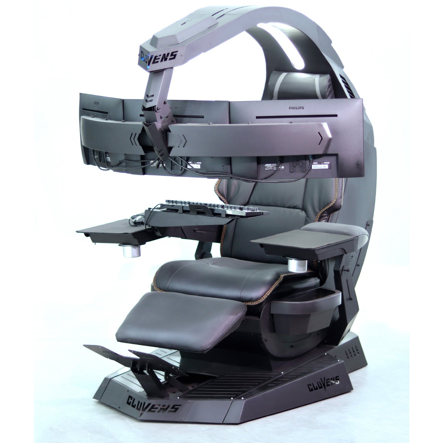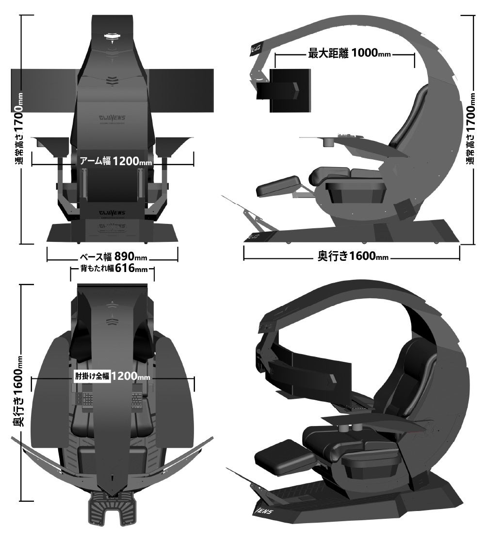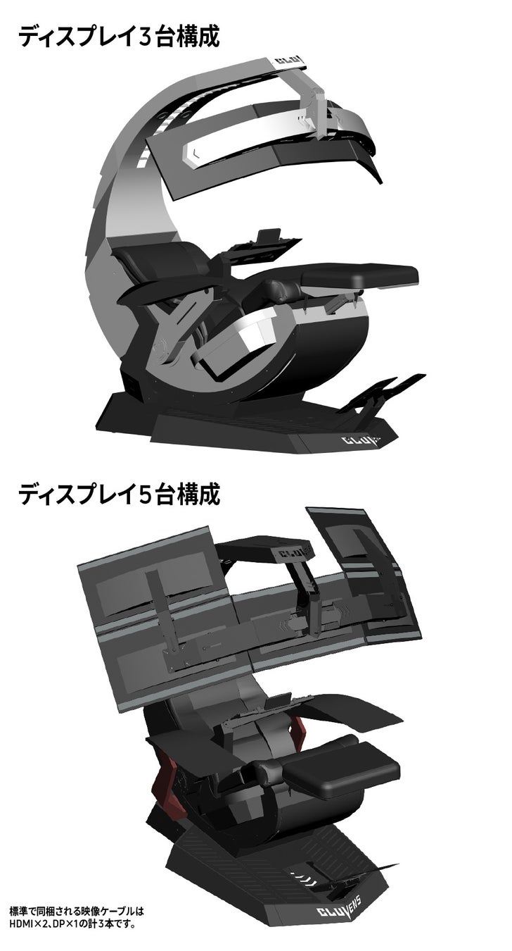 また、最大5台までのモニターを固定可能で、背もたれ、フットレスト、シート高をボタン操作で調整可能です。