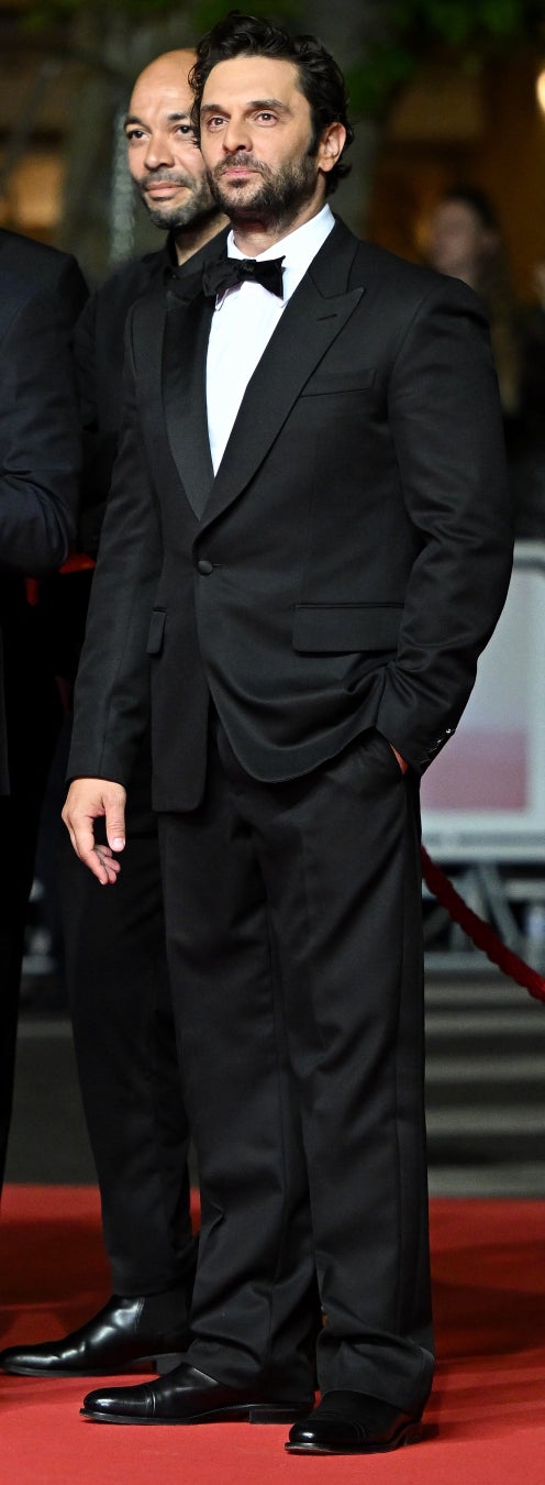 ピオ·マルマイは、映画「Le Roi Soleil(原題)」のプレミアに、カバードボタン付きのブラックのシングルブレストタキシードジャケットに、同カラーのタキシードパンツ、ホワイトシャツ、ブラックの蝶ネクタイと、ブラックのブーツを合わせました。