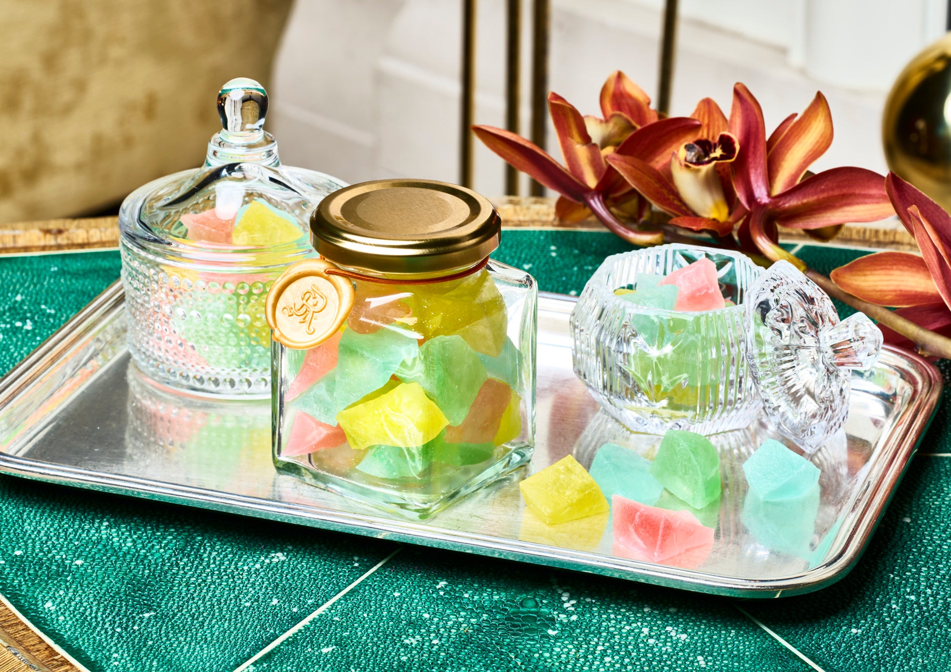 「食べる宝石」とも称される華やかで上品な甘さの琥珀糖を詰めた瓶は、まるで宝石箱のよう。時代を超えて受け継がれるセントレジスの伝統に思いを馳せながら作る宝石箱とともに、ホテルで過ごす夏の思い出をご自宅にお持ち帰りください。