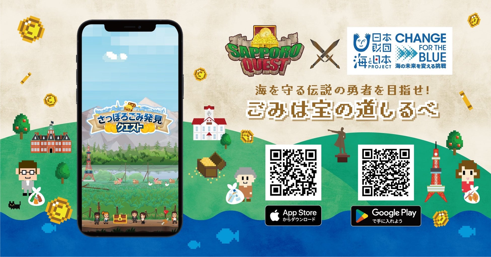 ごみが宝の道しるべ ごみを見つけて総額500,000コインをGET!海を守る伝説の勇者を目指せ!「さっぽろごみ発見クエスト」開催