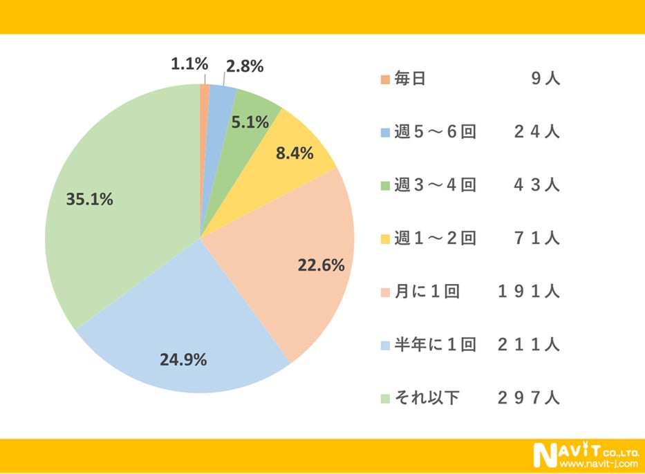 質問:どれくらいの頻度で路線バスを利用しますか?(対象:利用すると回答した846人)