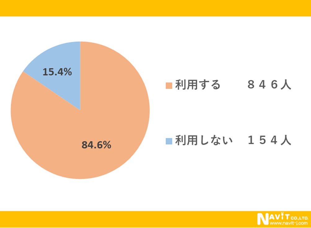 アンケート回答者1,000人のうち、約8割以上の846人が路線バスを「利用したことがある」という結果になりました。身近な交通手段として、多くの方が利用をしたことがあるようですね。