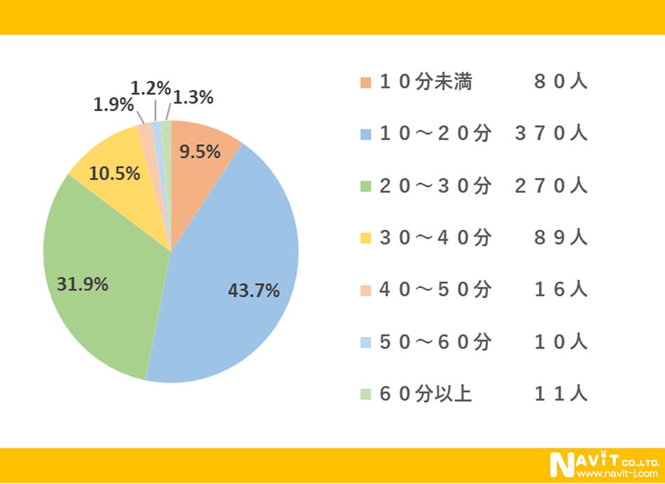バスの乗車時間については、40%以上が10~20分の利用であると回答されました。利用する人の全体で見ると、約85%人が30分以内での利用ということが分かりました。