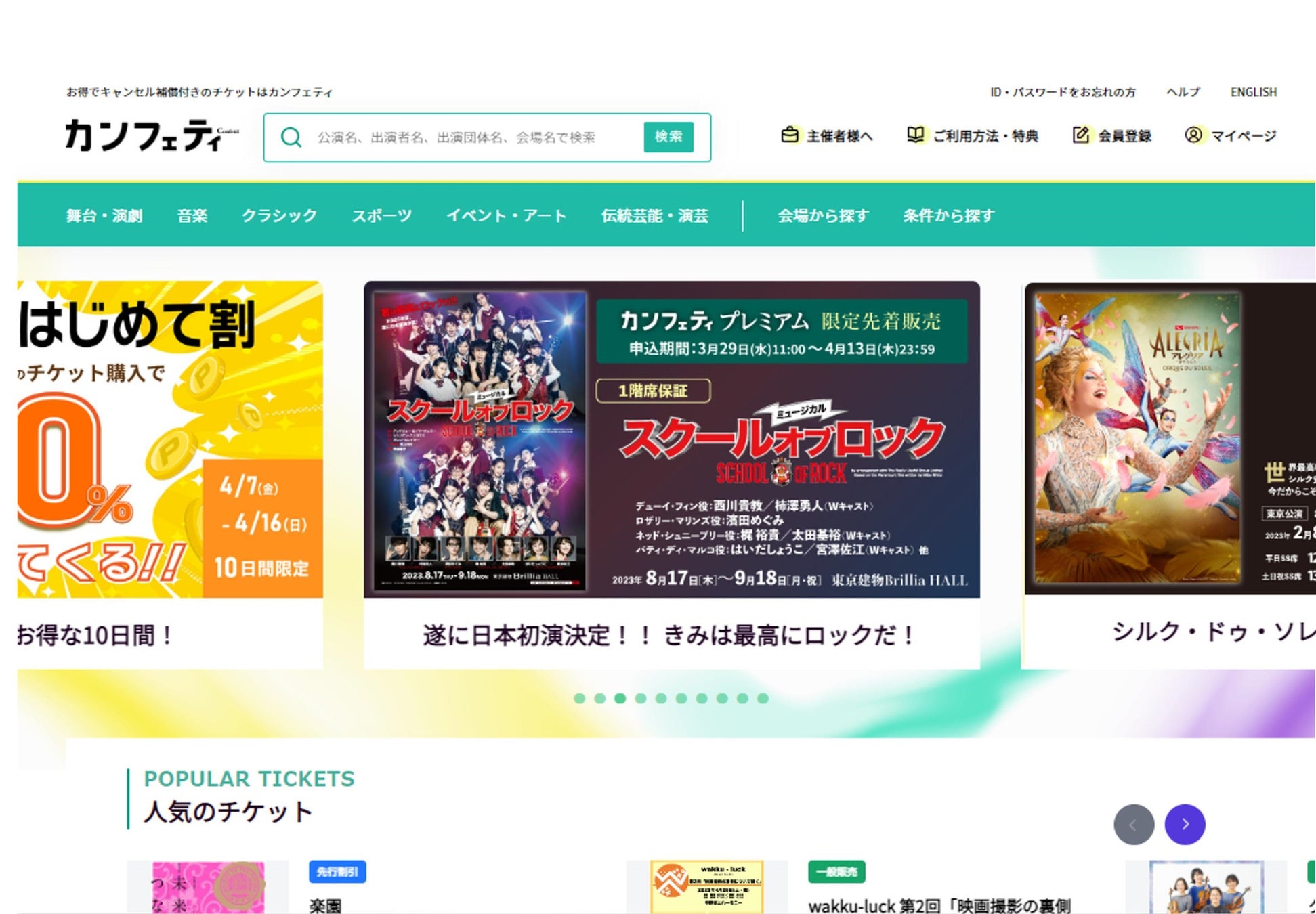 チケットサイト「カンフェティ」(月間210万PV/会員約140万人)では、2023年4月より、新規会員様に向けた2つのお得なキャンペーンを実施致します。