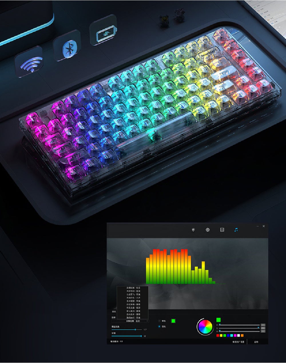 「Gespo-Pene」(ゲスポ・ペーネ)は高透明度のPC素材、フルキーホットプラグ、ダブルISSP消音構造、そして3種類の接続モードを持つキーボードです。
