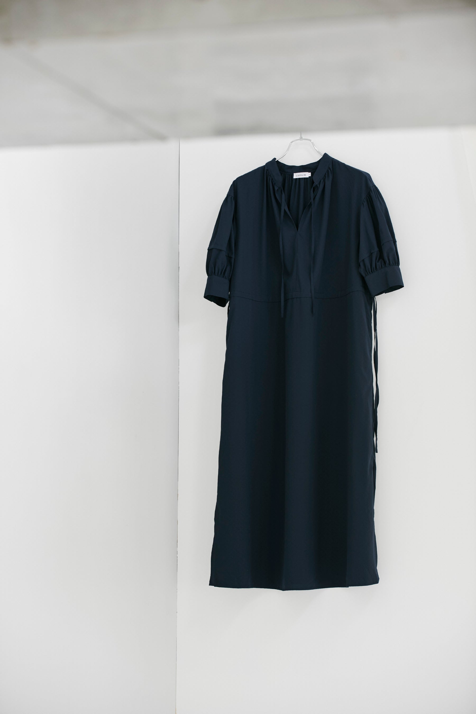 ウエストギャザーのワンピースは両サイドの紐でシルエットのアレンジが可能。そのまま爽やかに、キュッと絞ってクラシカルに、表情豊かな1枚です。袖のタックやすっきり開いたデコルテなど、大人に似合う甘ディテールが心強い。