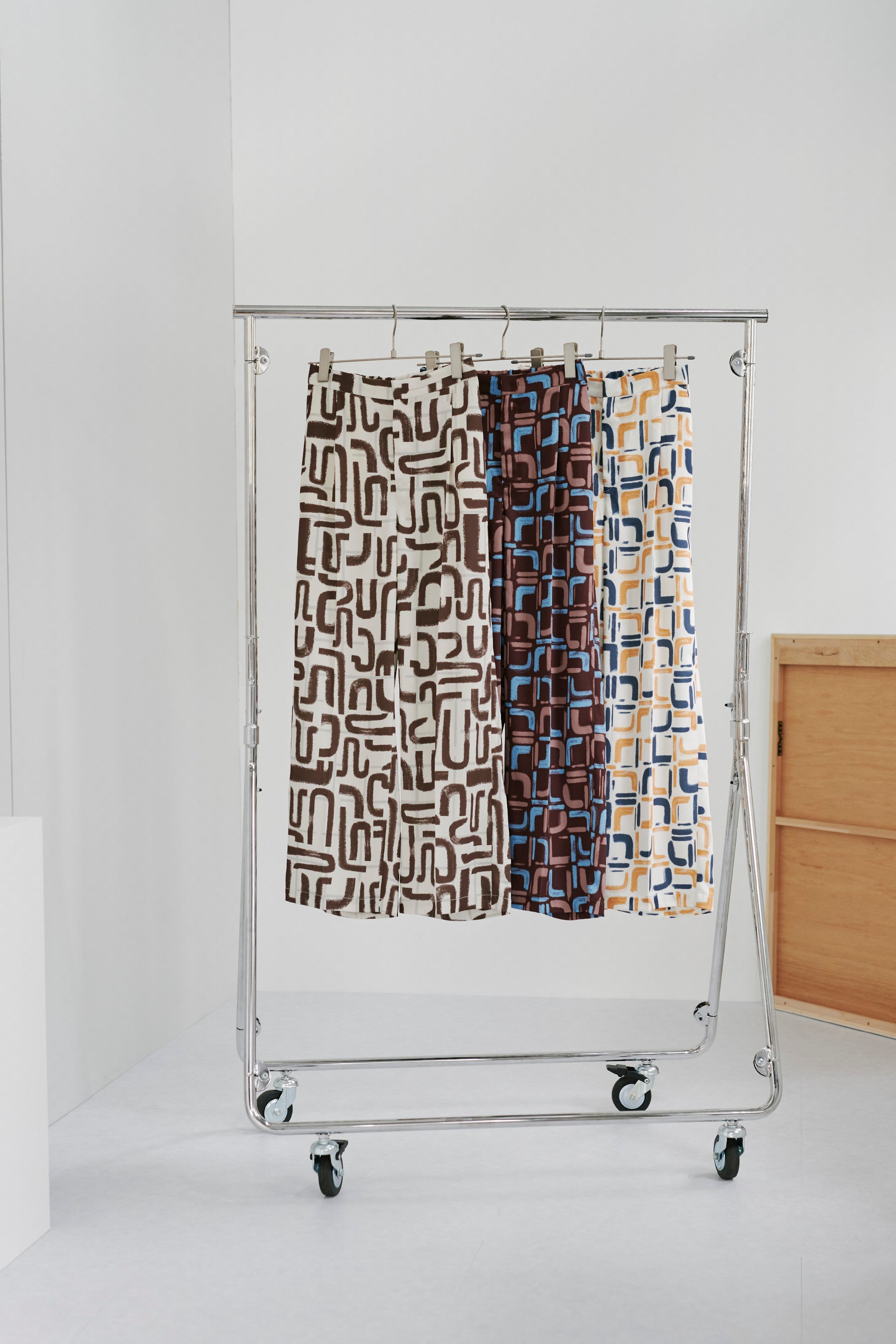 大人の女性こそ着こなせる落ち着いた配色とグラフィカルなデザインのワイドパンツ。裾にかけて広がるシルエットがこなれ感を演出し、かっこよくまとまります。コンパクトな無地のTシャツを合わせたり、ワンピースをレイヤードする着こなしもおすすめです。