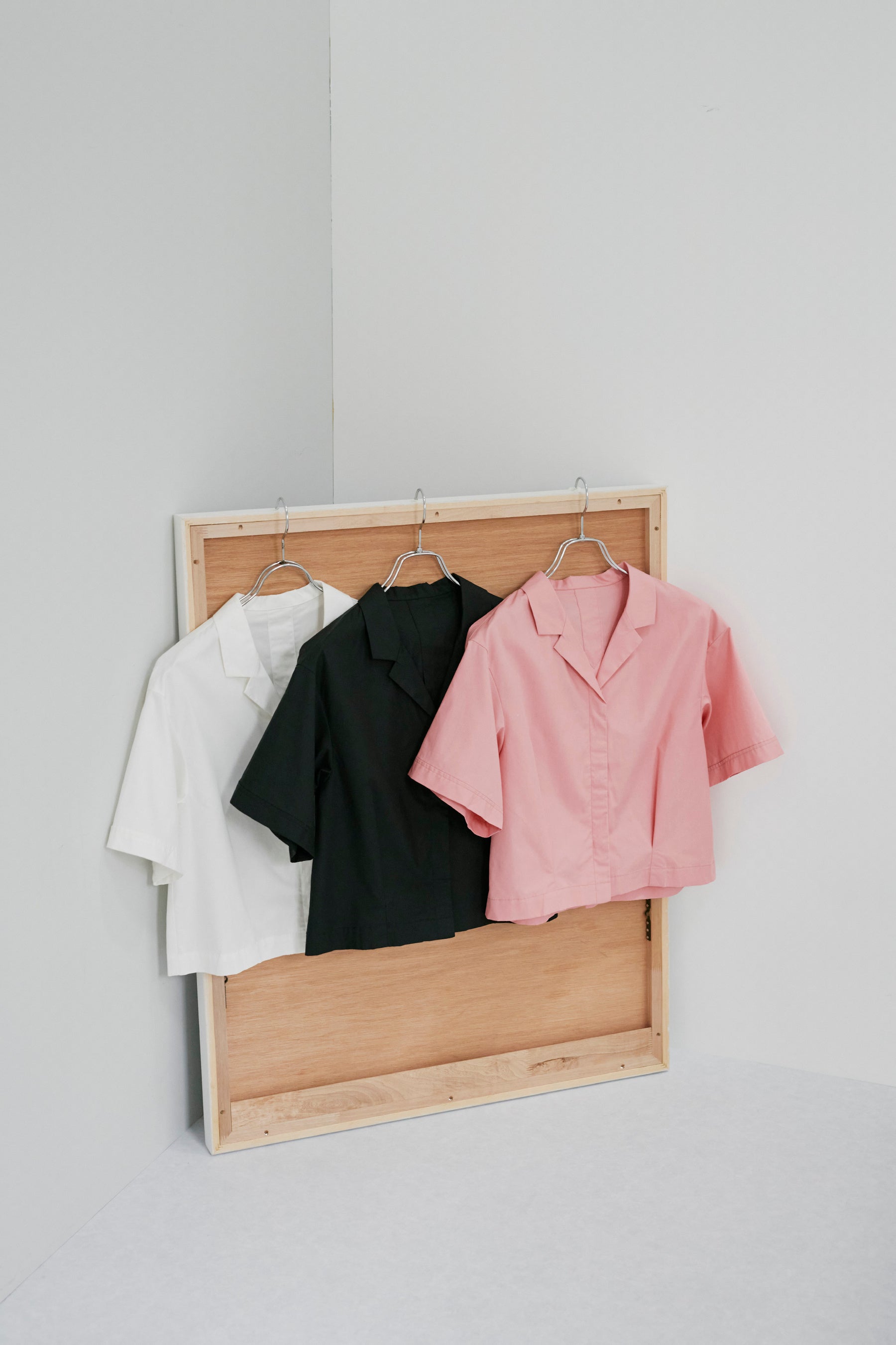 裾タックで生まれた丸み、太めの袖バランス。ユニークなディテールが施された、羽織るだけでコーディネートが決まる旬なショートシャツ。ワイドパンツからスカートまで、様々なボトムスと好相性。シワになりにくいのも嬉しいポイント。