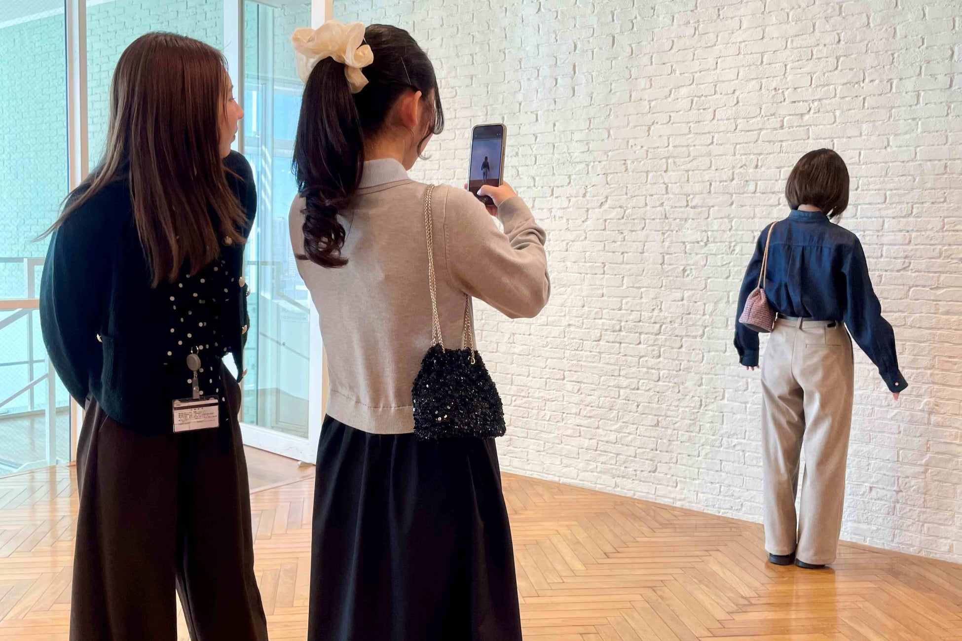 デジタルマーケターの業務を想定し、SNS投稿やライブ配信を活用した顧客を惹きつけるEC運営を体験。参加者は実際にブランドアイテムを着用してモデル撮影を行い、写真撮影・加工の実践的なテクニックと運用上のノウハウを習得した。