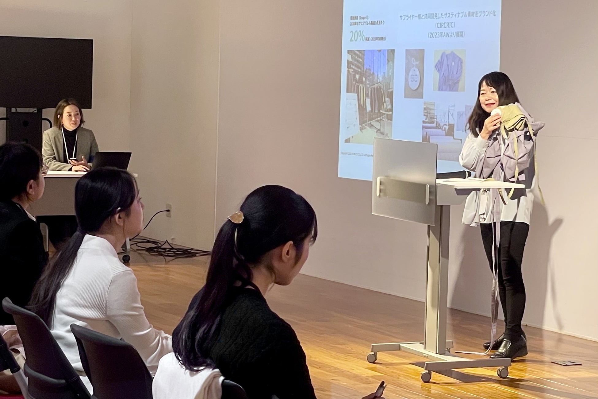 SDGs推進室が実施したワークショップでは、洋服の製造過程で出る残布や端糸を材料にタッセルを制作。アップサイクルの具体的手法や資源循環・廃棄削減の意義の体感や、ものづくりを通じて価値創造の考え方を学ぶ機会を提供した。
