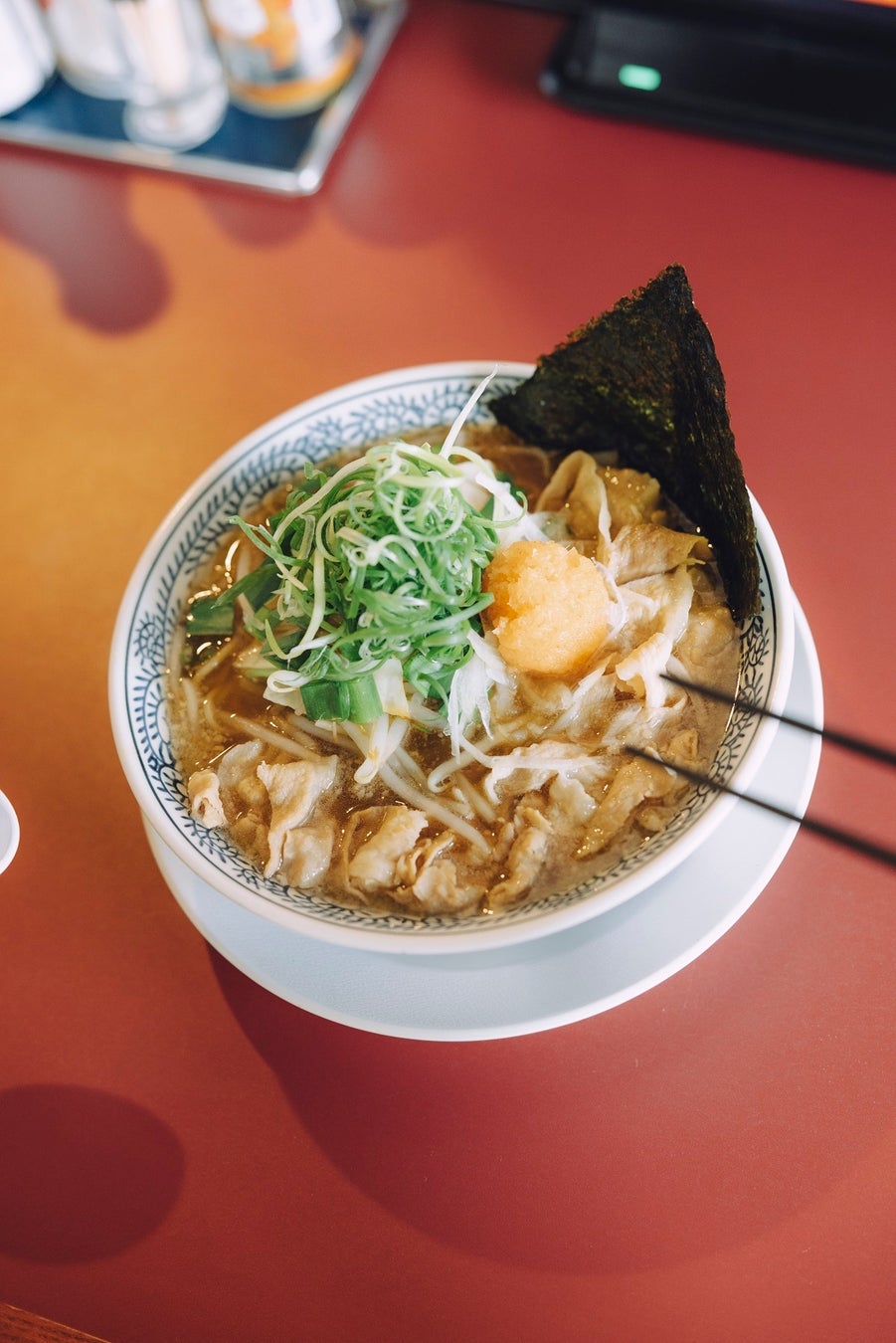 【丸源ラーメン】 全国200店舗以上を展開する愛知発祥の ラーメンチェーン。看板商品の『肉そ ば』をはじめとする各種ラーメンへの 飽くなきこだわりと充実したサイドメ ニュー、そして広い駐車場と明るく清 潔な店舗、郊外型のゆったりとした店 舗作りで、個人やカップル、ファミ リー層と幅広い客層に愛されている。 撮影は練馬光が丘店で実施。 https://www.syodai-marugen.jp/
