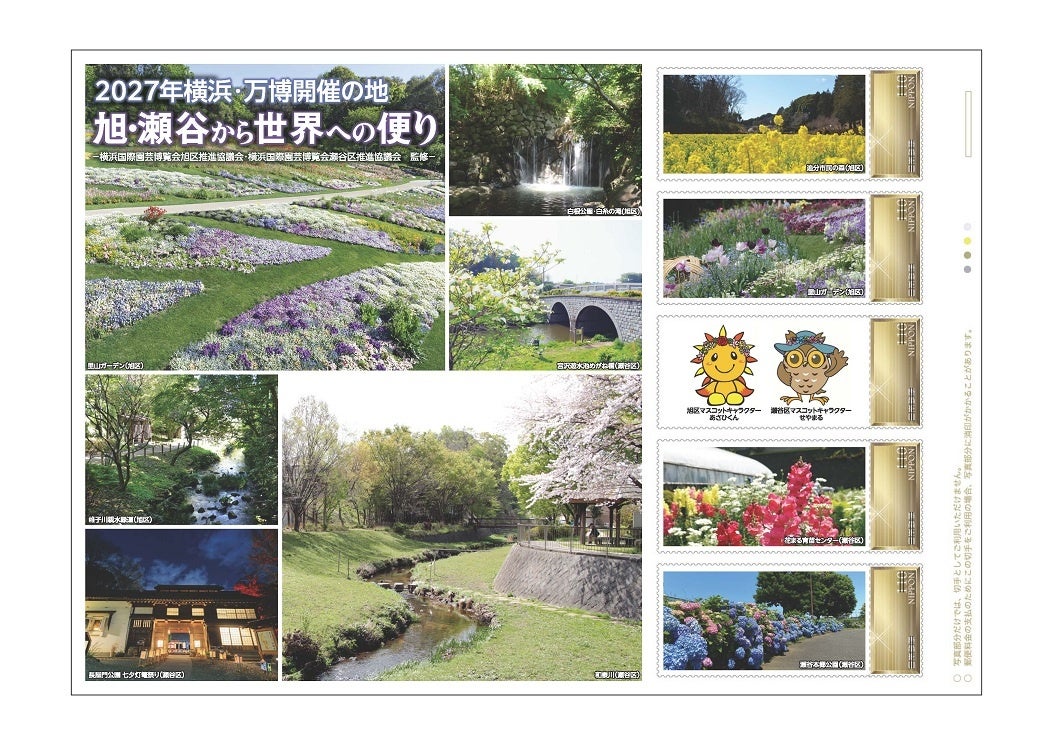 このオリジナル フレーム切手は、横浜国際園芸博覧会旭区推進協議会、横浜国際園芸博覧会瀬谷区推進協議会、旭区および瀬谷区が素材提供し、日本郵便株式会社が製作し販売するものです。