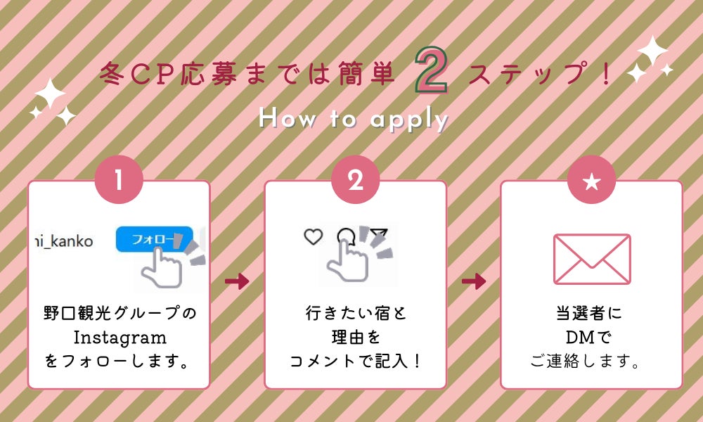 野口観光グループ公式のInstagramアカウントをフォローして、「行きたい宿と理由」をコメントするだけでどなたでも気軽に参加可能です!