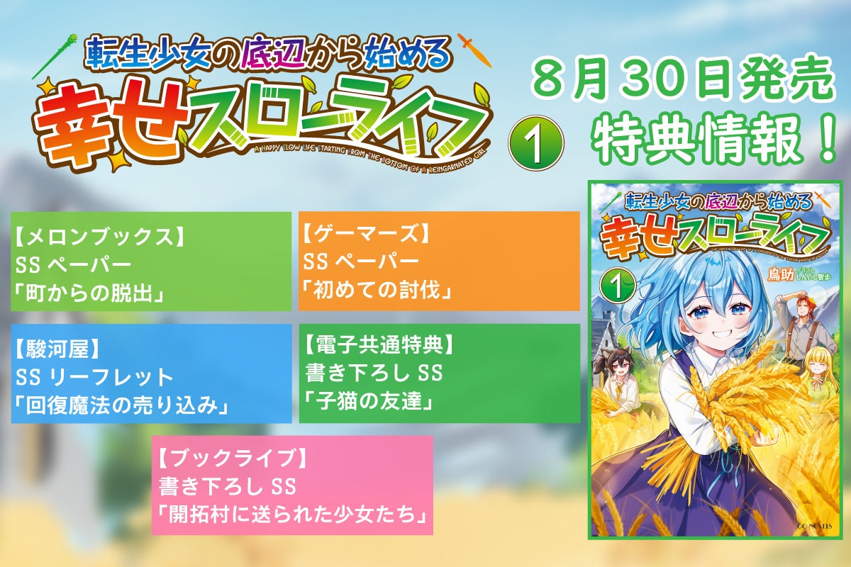 <書籍情報> 転生少女の底辺から始める幸せスローライフ 1 著:鳥助/イラスト:しんいし智歩 |