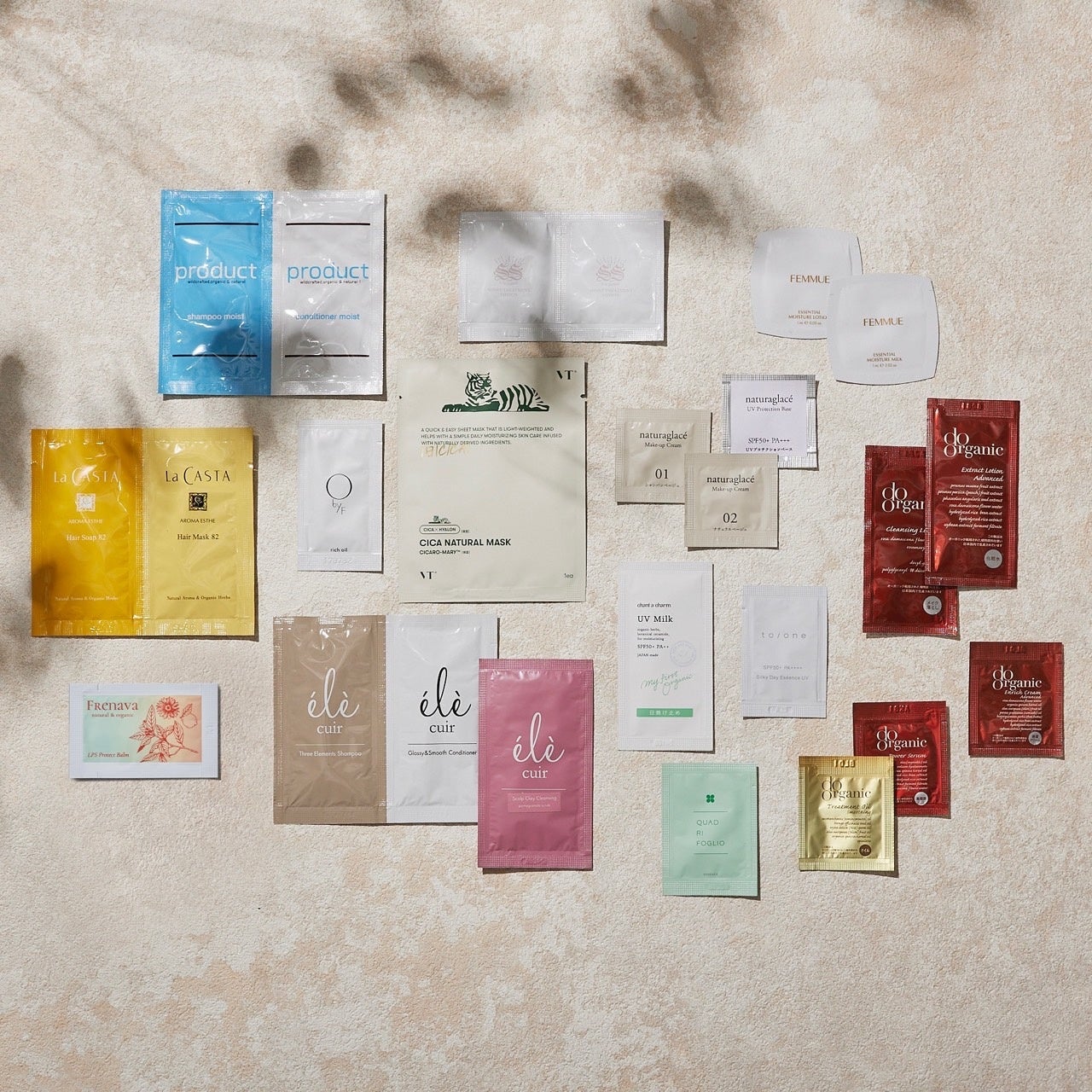 話題のCICAブランド『VT(ブイティー)』からこの春新登場のナチュラルラインより、MOOK本でしか手に入らないシートマスク非売品1枚を。さらにデビューしたばかりのイガリシノブさん×メイクアップキッチンプロデュースの『SS by Whomee(ソソ バイ フーミー)』の保湿化粧水の他、『to/one(トーン)』や『FEMMUE(ファミュ)』といった、コスメキッチン人気ブランドのメイク・ヘアケアが試せる充実のラインアップです。