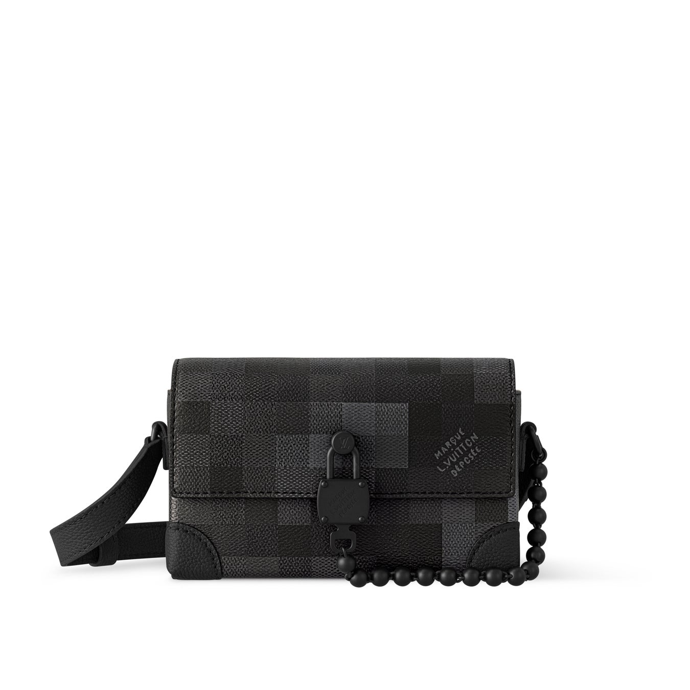 「スティーマー·ウェアラブル ウォレット」は、新たにスクエアシェイプのパドロック(錠前)をボールチェーンにあしらいました。ピクセル状のアイコニックなダミエ·グラフィット モチーフがモダンな雰囲気を演出します。肩掛けや斜め掛けを楽しめる調節可能なストラップ付き。