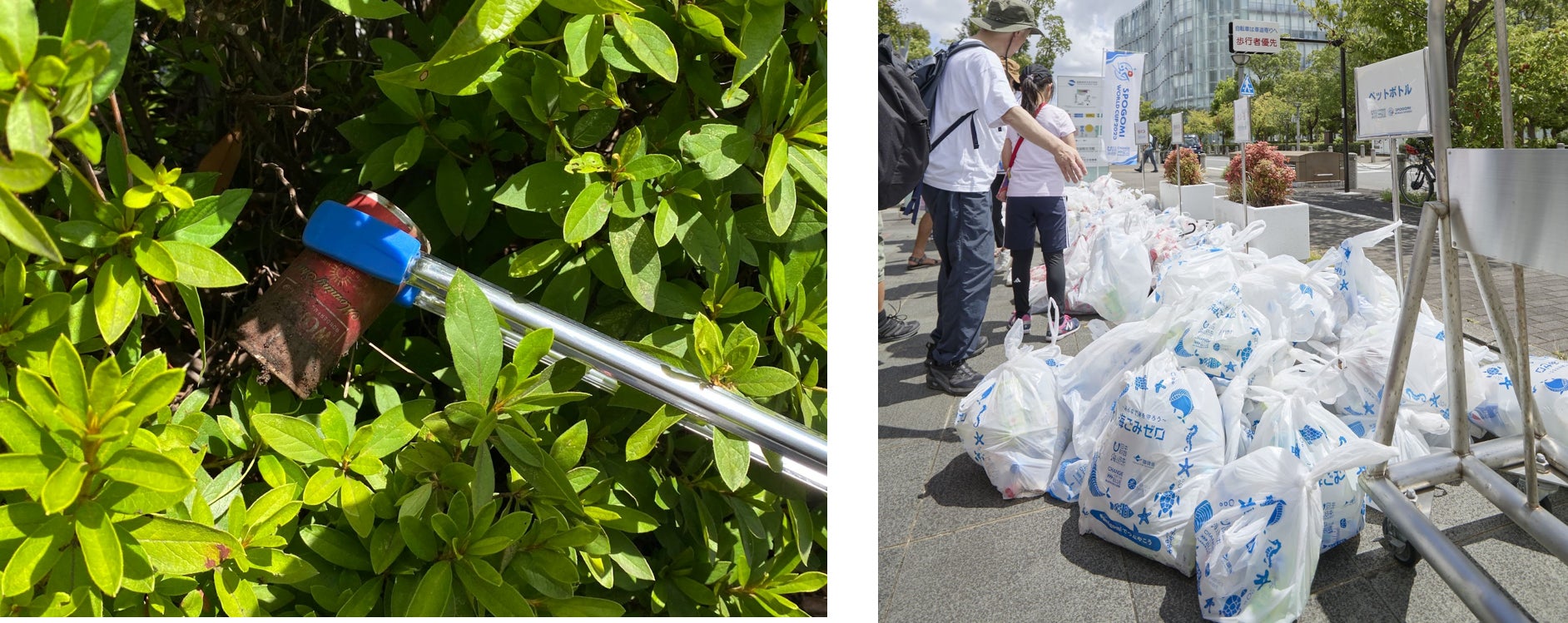ごみを探しながら街を歩いてみると、植木の中には空き缶やビン、街路樹の根元にはたばこの吸い殻が。一見きれいに見える街並みでも、探してみるとごみは結構落ちていました。そして、約60分の競技時間内で集められたごみの総量は、なんと113.495kg!54チーム157人の力で、100kg以上のごみを集めることができました。