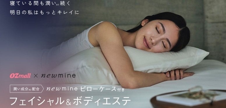 厳選サロンによるフェイシャル&ボディエステメニューと、潤い肌*1 がずっと続く 「newmine cosmetics」 の ピローケース&コンパクトタオルがセットプランで登場