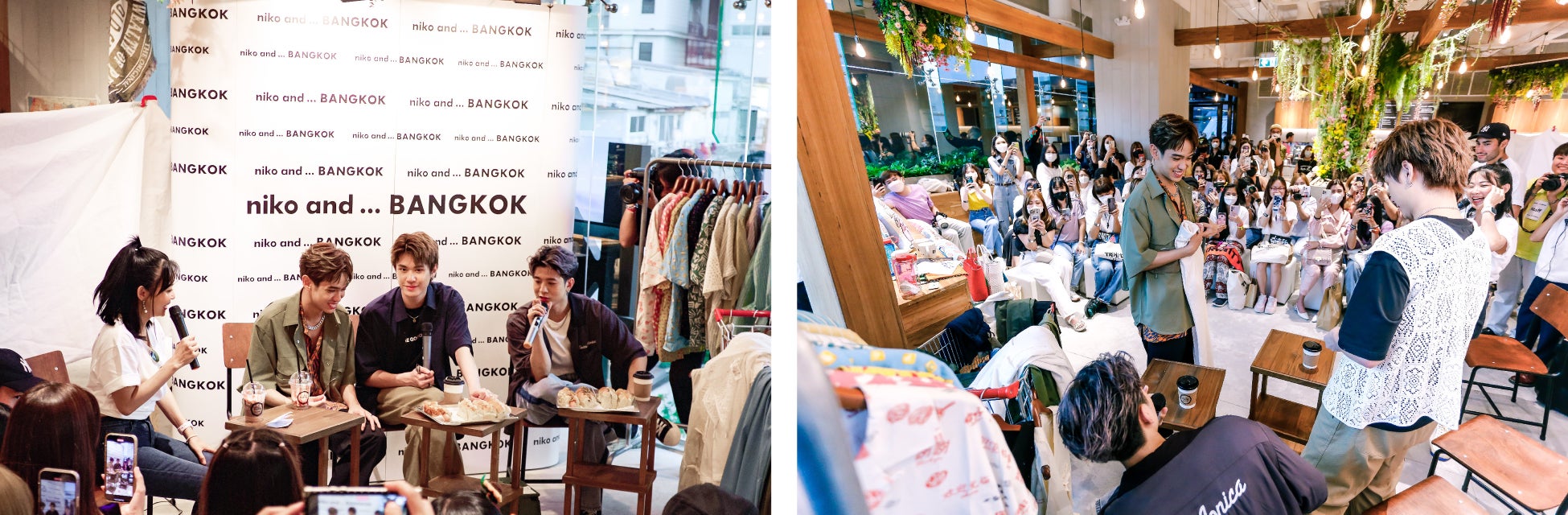 さらにオープニングイベントとして実施した、タイの人気ボーイズグループ「TRINITY」とのコラボレーションでは、ライブパフォーマンスには約450人が集まり、その後店内で実施したメンバーによるコーディネート紹介や「ニコパン」試食会が盛り上がり、盛大なオープニングとなりました。