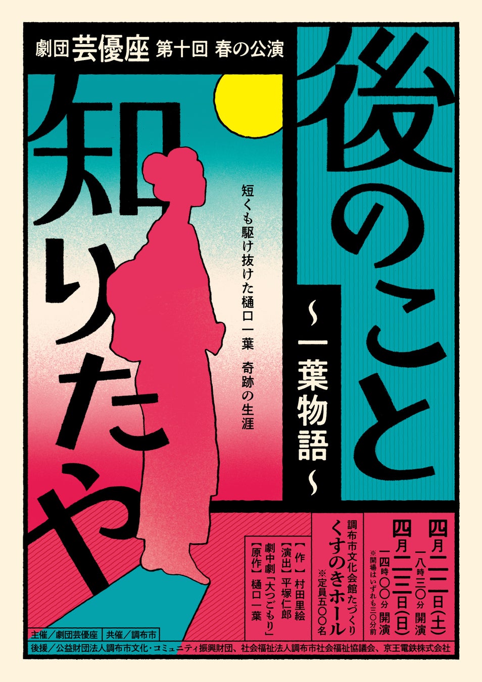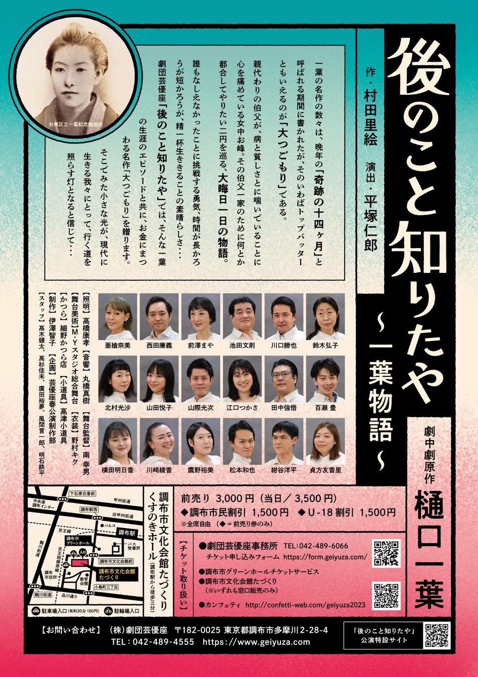 「映画のまち調布で、演劇ももっとお得に!」 まず面白く、確かなテーマで!をモットーに全国で公演を続ける芸優座が地元調布市で贈る、樋口一葉その奇跡の物語
