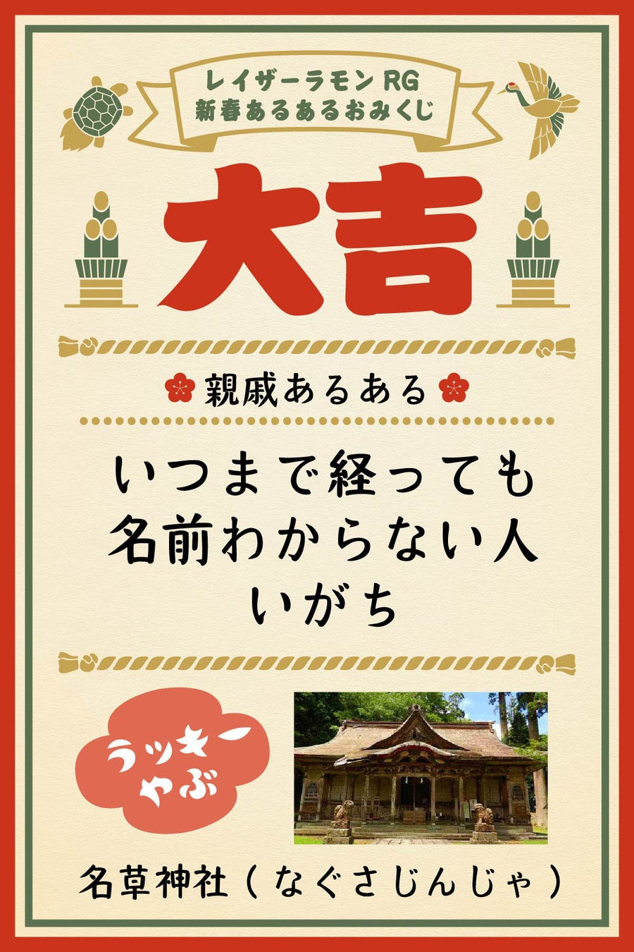 バーチャルやぶではすでにそれらをモチーフとした寺社を設置していますが、今回、それらにレイザーラモンRGとコラボしたおみくじ「レイザーラモンRG 新春あるあるおみくじ」が引けるおみくじ処を設置することになりました。RGが監修した至高のあるあるとともに、運を開く養父市の特産品や観光地をご紹介いたします。