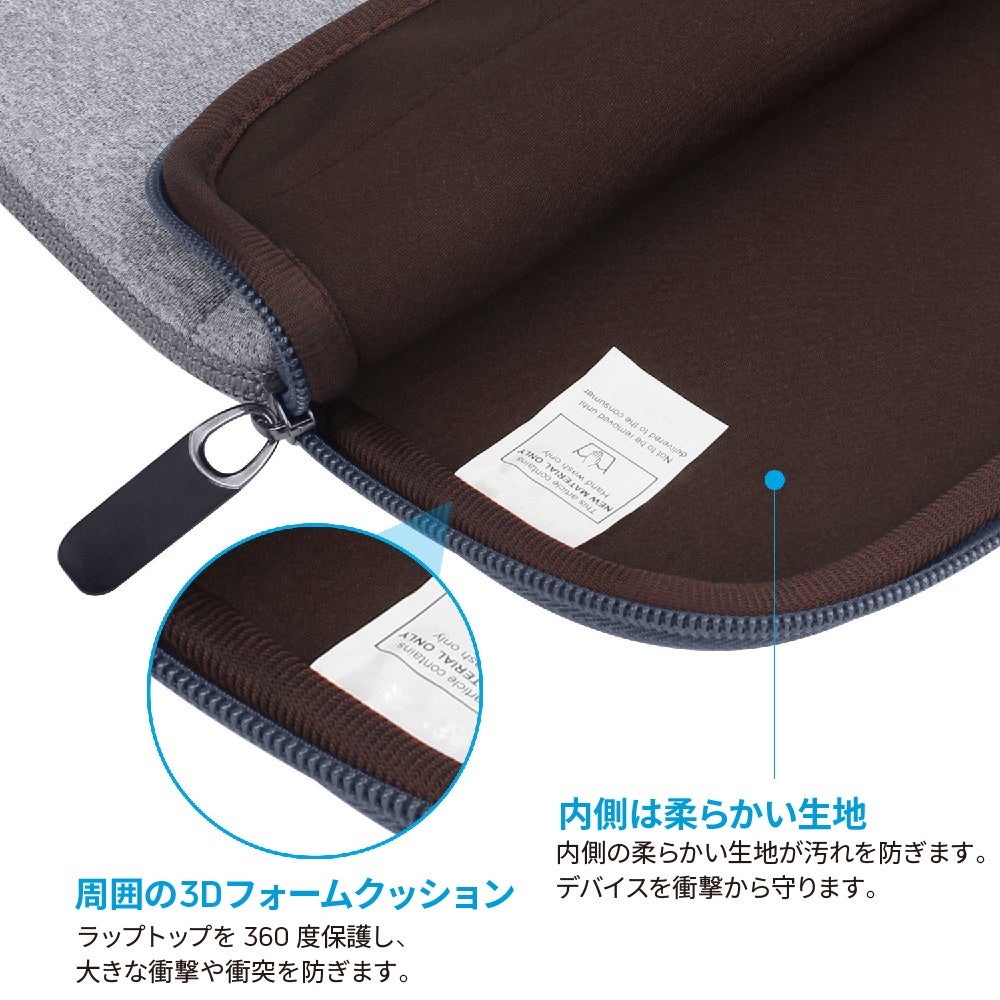 さらに内側の生地は柔らかいファブリック素材を使用しているため、ラップトップが傷つくのを防いでくれます。