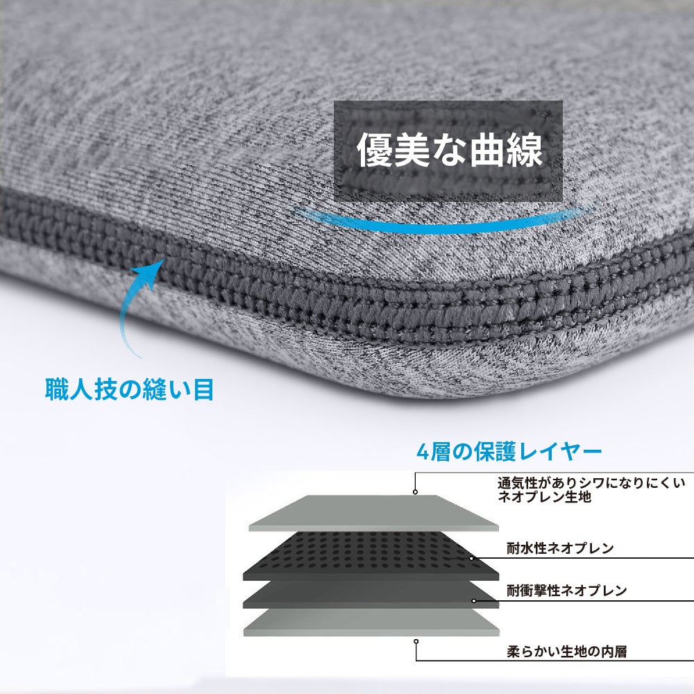 そして何よりも、Sleeve-DotDはあなたの大切なラップトップをしっかりと保護します。4層の生地が衝撃を吸収し、バッグの4辺は裏地が3Dフォームになっているのでラップトップを落下の衝撃から守ります。