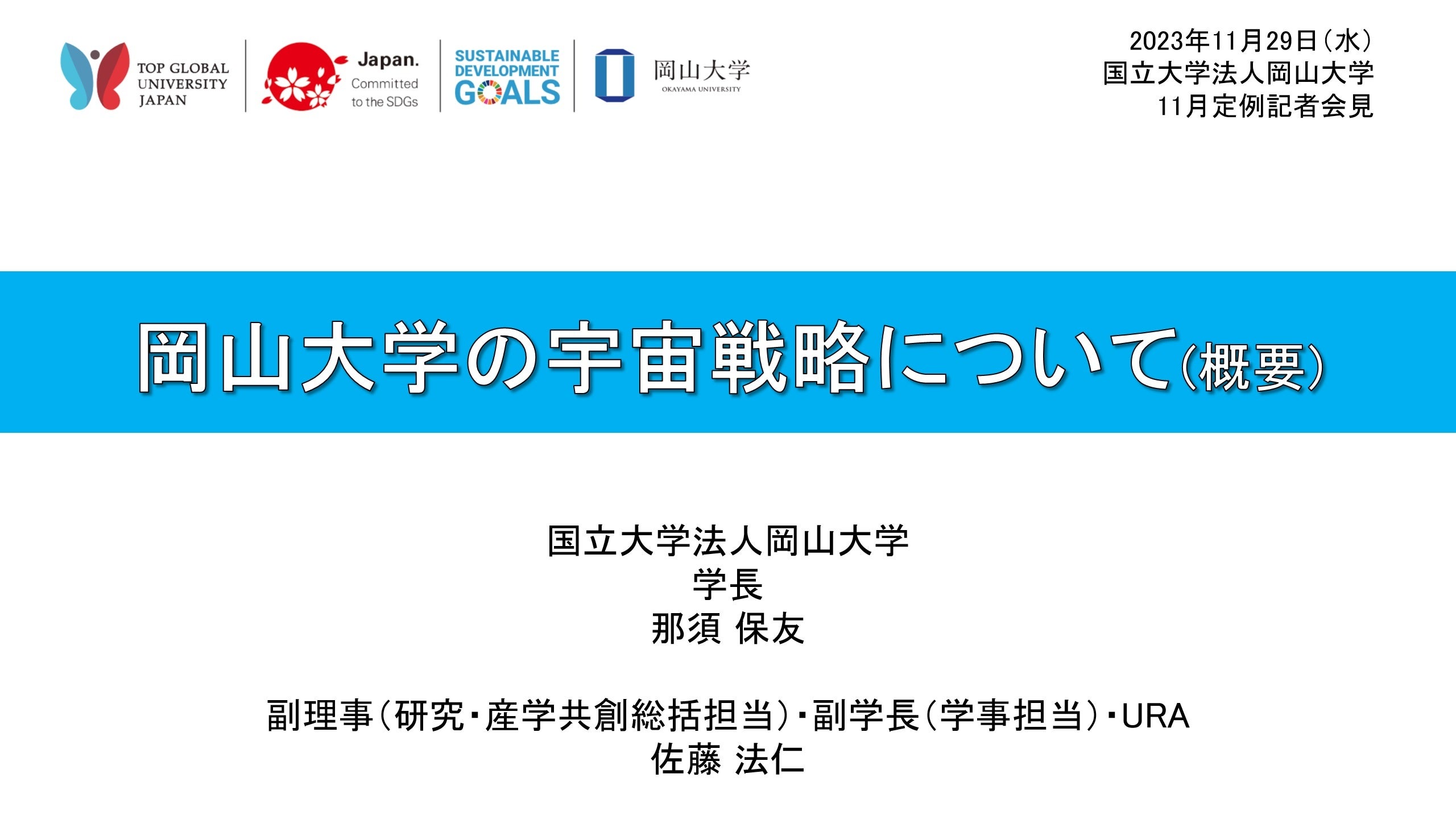 「岡山大学の宇宙戦略について(概要)」岡山大学 学長定例記者会見発表(2023年11月)