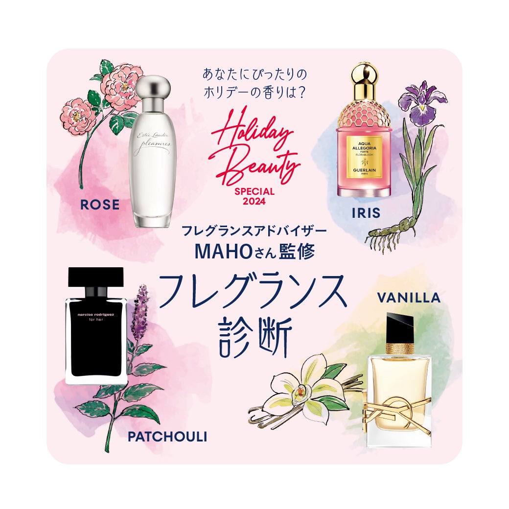 WEBでは上記マガジンテーマをより詳細に、ホリデーシーズンを華やかにする多数の限定アイテムや、ぴったりの香りが見つかる「フレグランス診断」など、ビューティー情報もタイムリーに配信いたします。