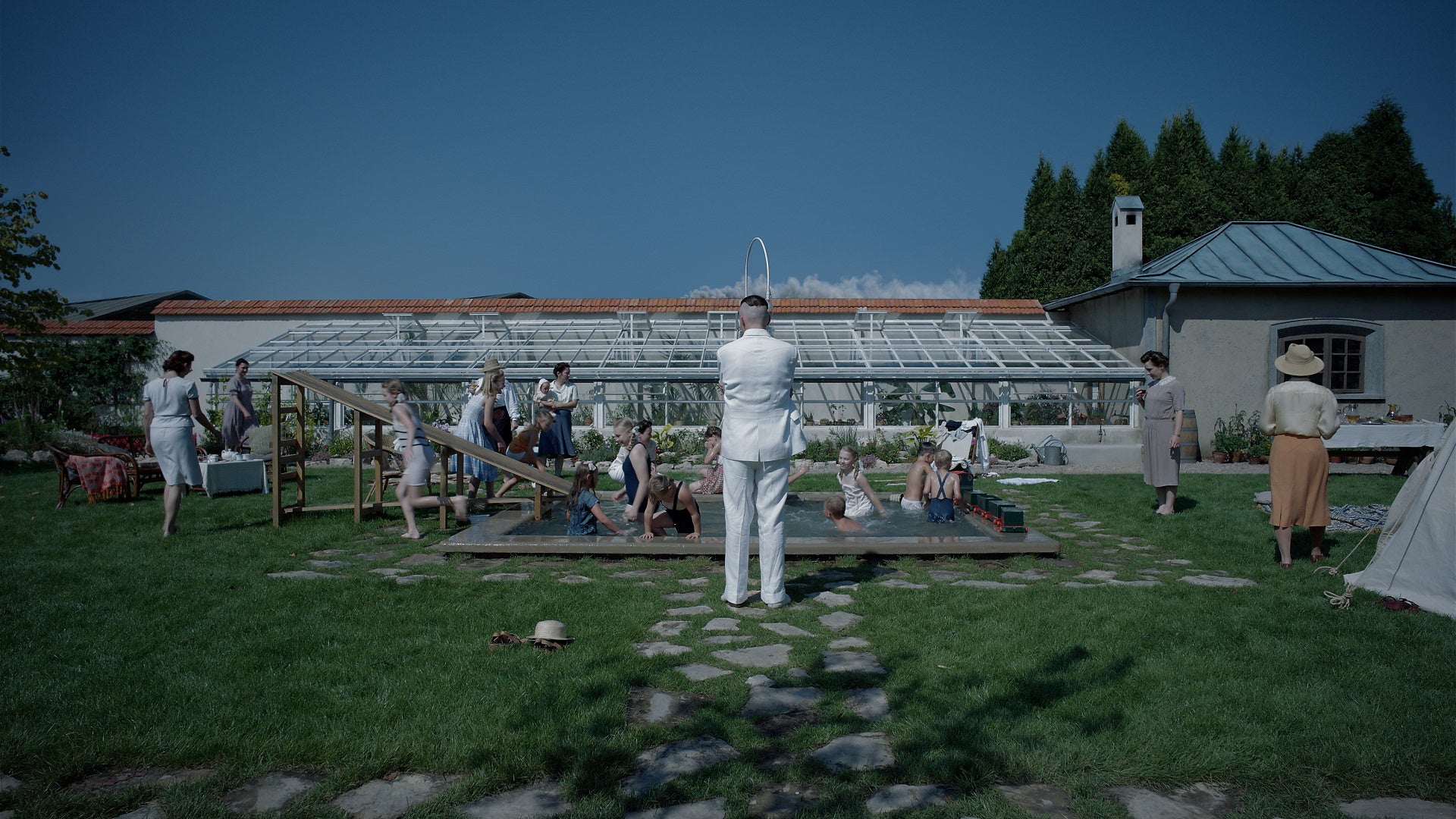 スクリーンに映し出されるのは、どこにでもある穏やかな日常。しかし、壁ひとつ隔てたアウシュビッツ収容所の存在が、音、