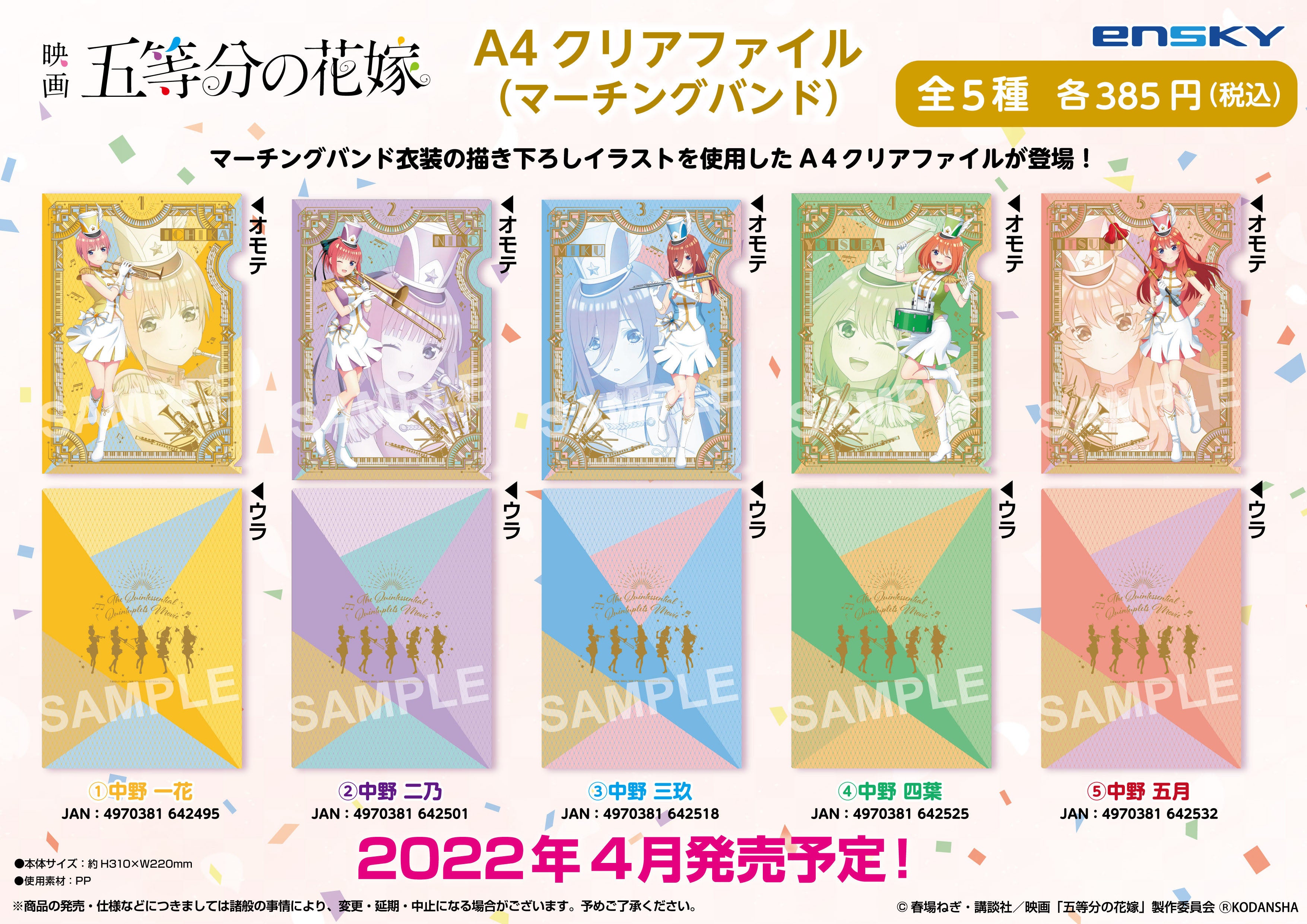 <エンスカイより、『映画 五等分の花嫁』A4クリアファイル(マーチングバンド) (全5種)が新発売>Animo(アニモ)にて2月24日より予約販売開始!