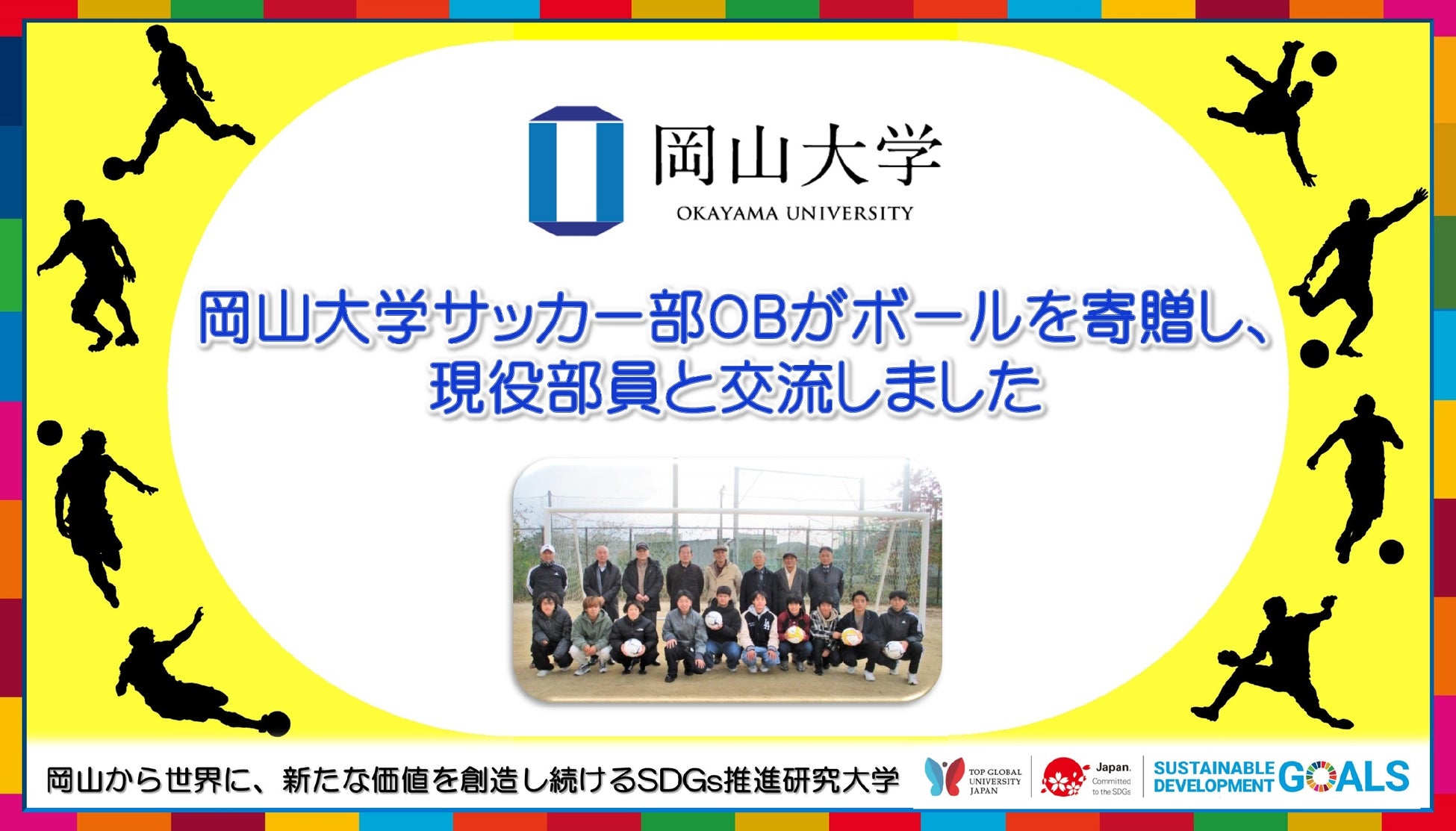 2023年11月28日に岡山大学サッカー部OBが本学を訪れ、サッカーボールを寄贈し、現役部員と交流を深めました。