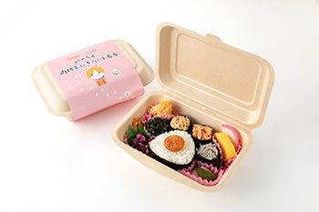 三角おにぎりと軍艦タイプのひと口おにぎりで肉球を表現。いろんな具材が楽しめる、春の行楽シーズンにぴったりのカラフルなおにぎり弁当。