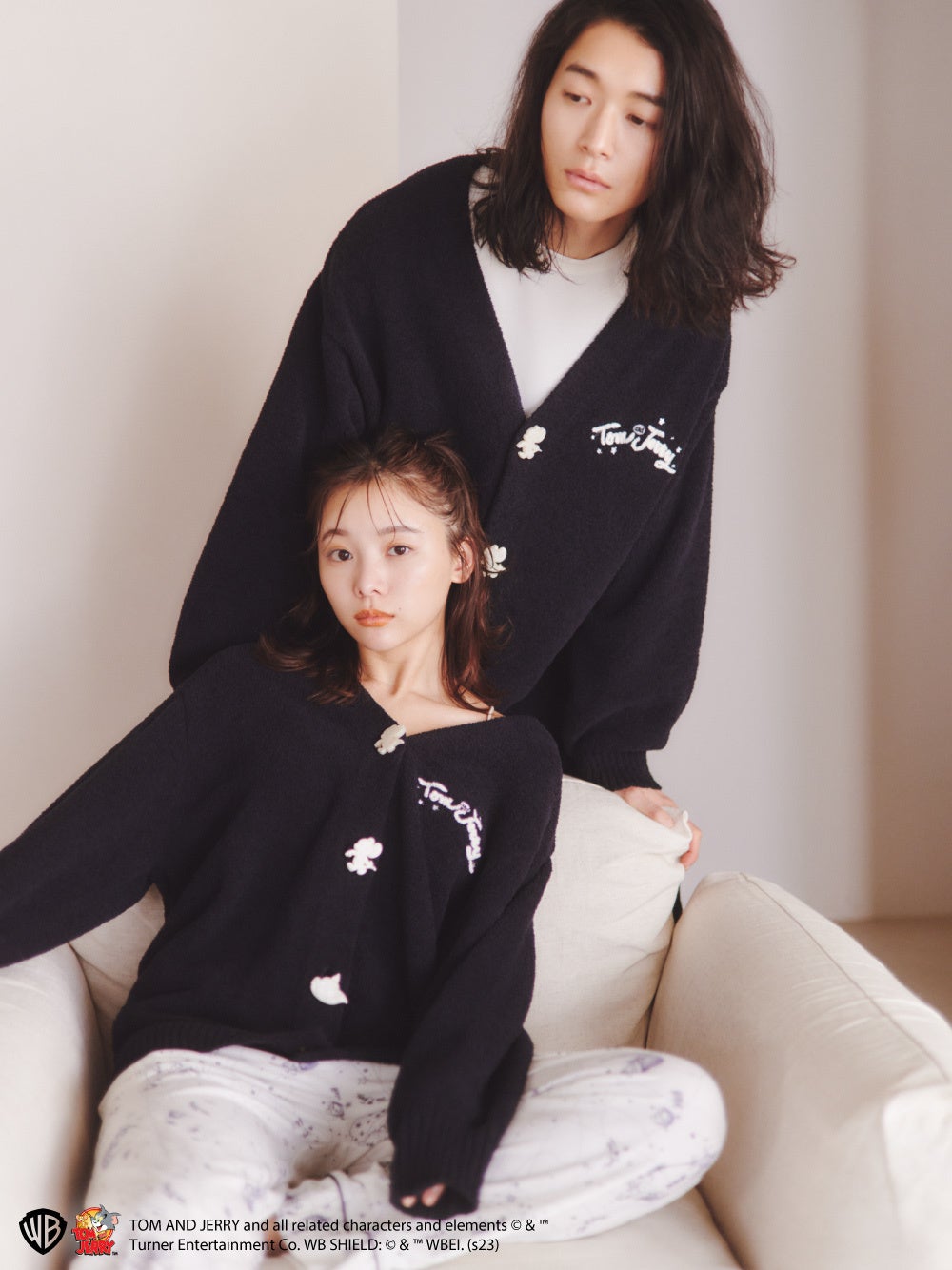 夢心地のおうち時間を楽しめる、「トムとジェリー」とのフィーチャリングコレクション。フロントにハンモックで眠るトムとジェリーや、大きなロゴをデザインしたジャガードニットプルオーバーは、同シリーズのニットロングパンツとセットで着られるデザイン。ペアでのコーディネートが叶うので、おうち時間をより一層楽しくしてくれるアイテムです。