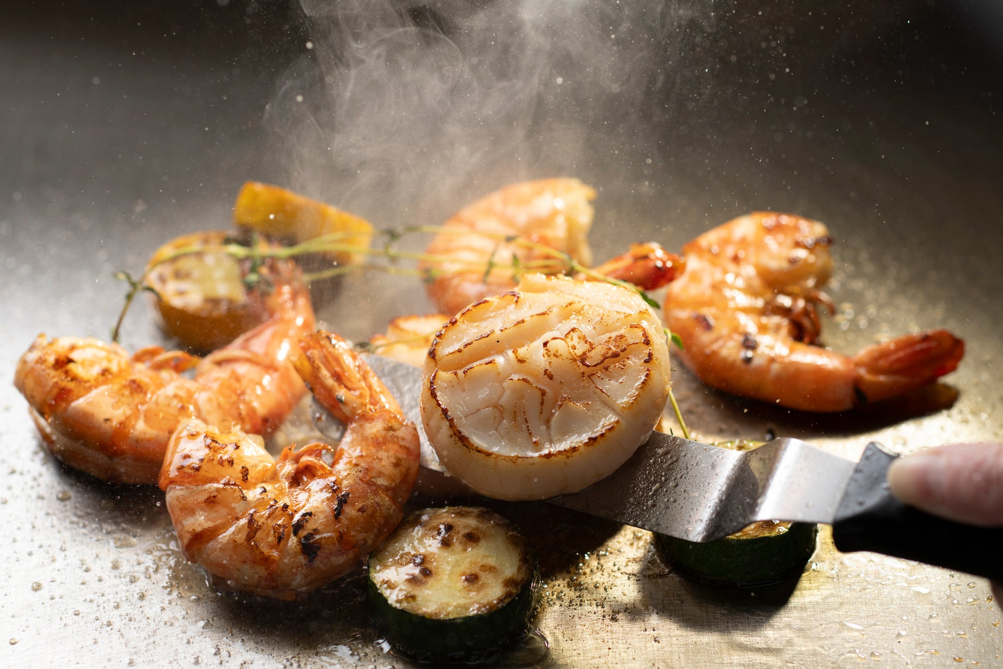 2 目の前で仕上げるライブキッチンと海の幸の数々