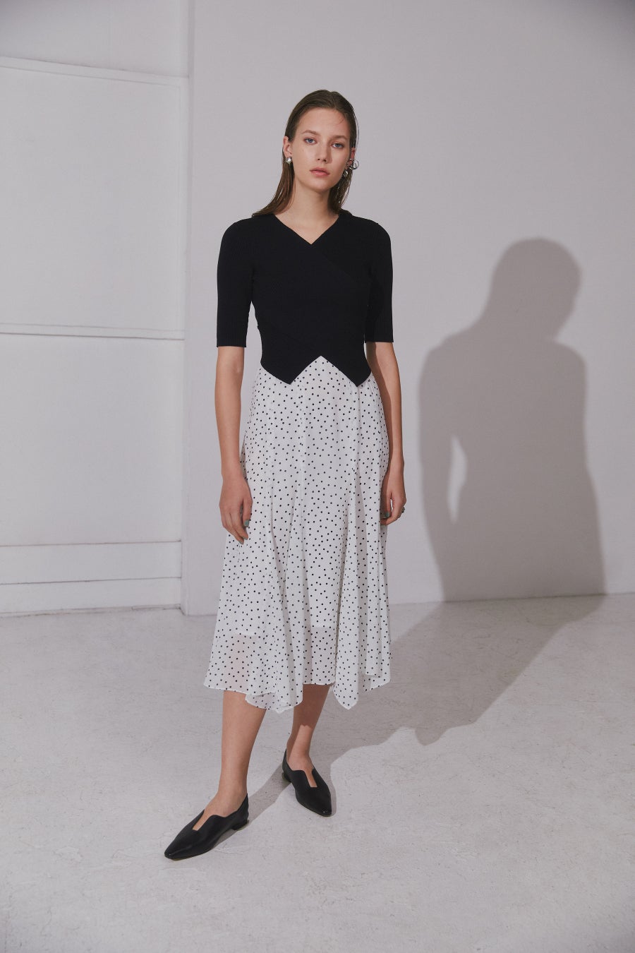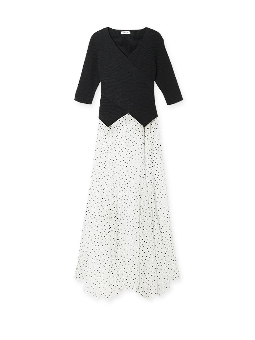 ブラックと白地のドットの組み合わせは、華やかさを与えてくれ、シーン問わず着用いただけるカラーです。