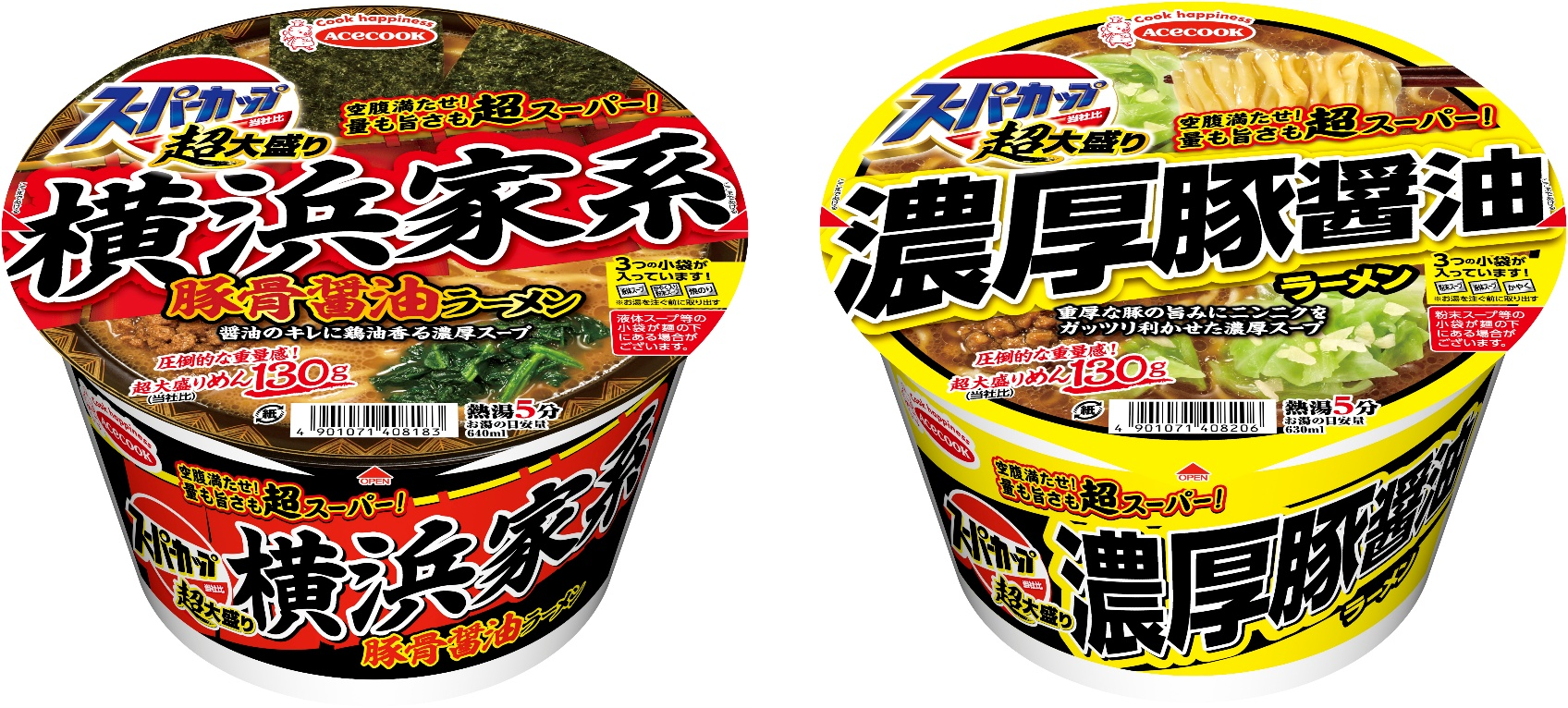 エースコック株式会社(本社:大阪府吹田市 代表取締役社長:村岡寛人)は、2025年9月8日より、「超大盛りスーパーカップ 横浜家系豚骨醤油ラーメン/濃厚豚醤油ラーメン」を新発売します。