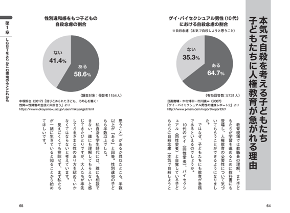 国や自治体、教育機関などがこの問題に取り組んでいることをわかりやすく解説しています。例えば、学校の制服をとっても女子生徒だからスカートじゃないとダメってどうして?という流れに対応する学校が出てきていたり、日本だけでなく世界規模でのムーブメントだということも理解できる内容です。