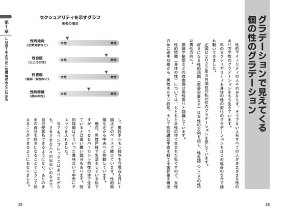 自分が性同一性障害だと知ってから、学校で、職場で、家族との関係、女性と結婚にいたり、たいせつな家族との日々など、いいこともそうでないことも逃げずに向き合う清水さんの姿をリアルに感じ取れます。実体験者だからこそ気づく内容がふんだんに盛り込まれています。