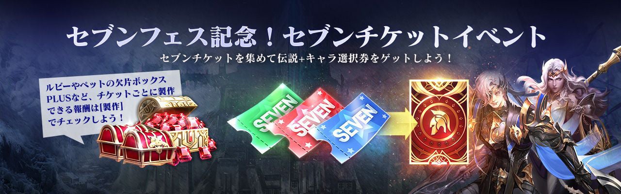 SHOOT&LOOTイベントやフィールド探索で手に入れられる「セブンチケット」を集めることで、ルビーや「伝説+キャラ選択券」などの特別アイテムを製作できます。