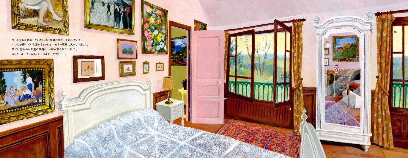 またジヴェルニーのモネ家の寝室やキッチン、リビングなども愛らしいイラストで忠実に再現されています。