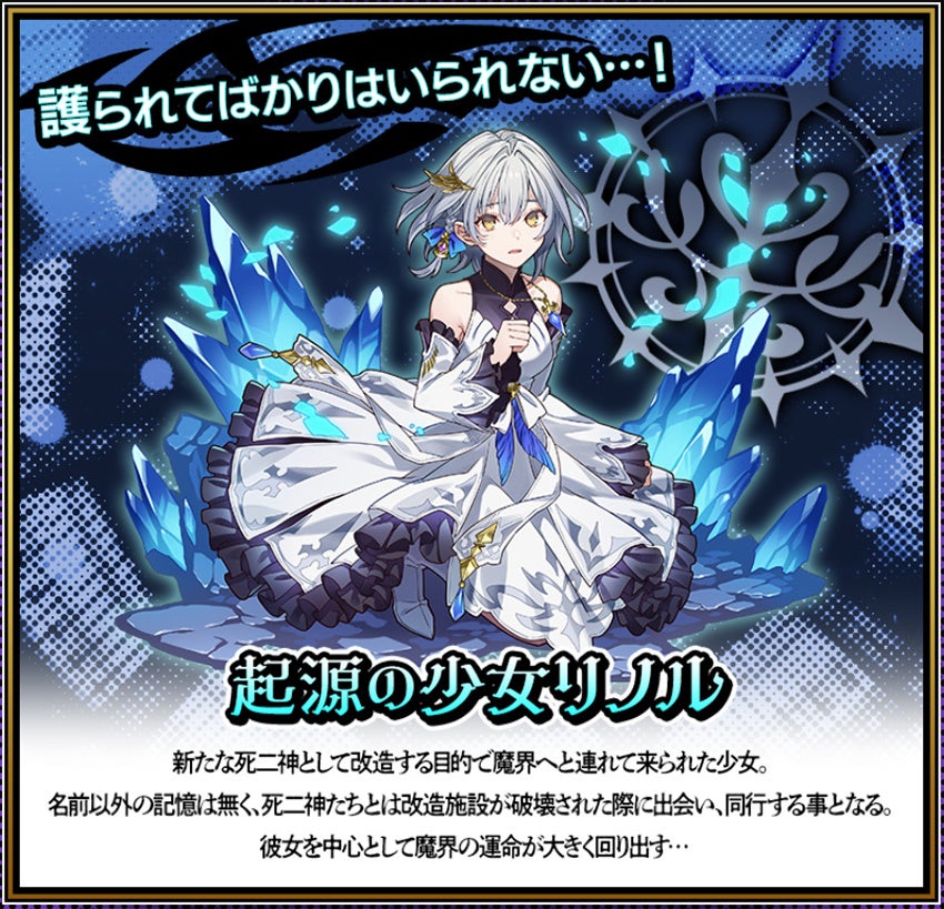 新イベント「魔界魂神譚」に登場する「起源の少女リノル」は、期間中ログインで、お知らせメールにて1度、お届けします。交換所やミッションなどで集めた「【宝玉】星霜の水晶」を使用すると、「宿命を辿りし少女リノル」に進化することが可能です。