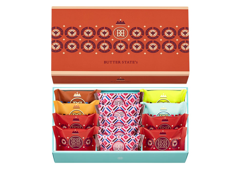 バターの香りあふれる代表作『バターステイツクッキー』の秋冬限定ギフトもどうぞ。バター含有率34%を誇る代表作『THEバターリッチ』に、コク深い『キャラメルナッツバター』、芳醇なココアの香りがたまらない『ショコラバター』、風味豊かな『ピスタチオバター』の4味。