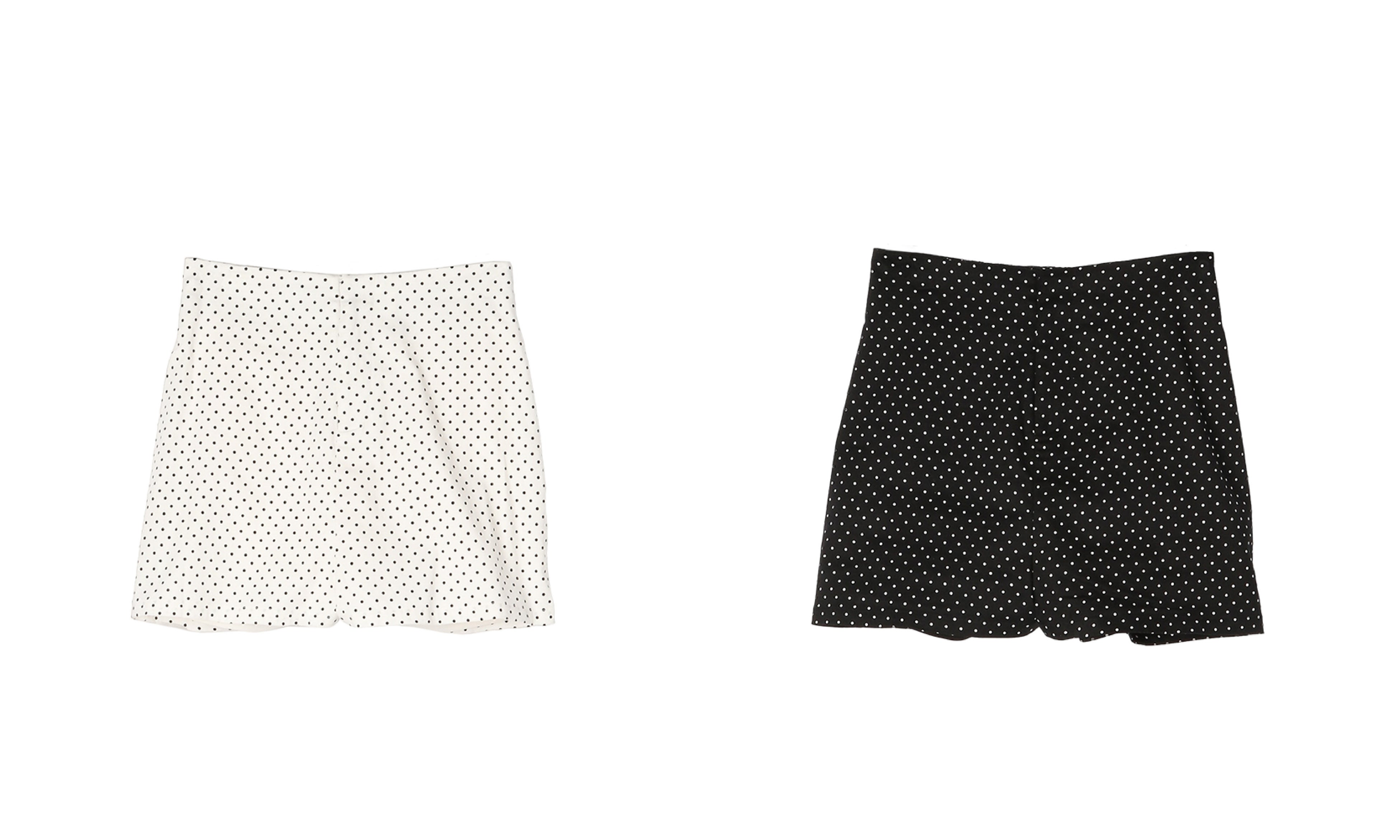 小さめなドットが可愛らしい雰囲気のドットパンツ。ハイウエストなので、スタイルアップ仕様。