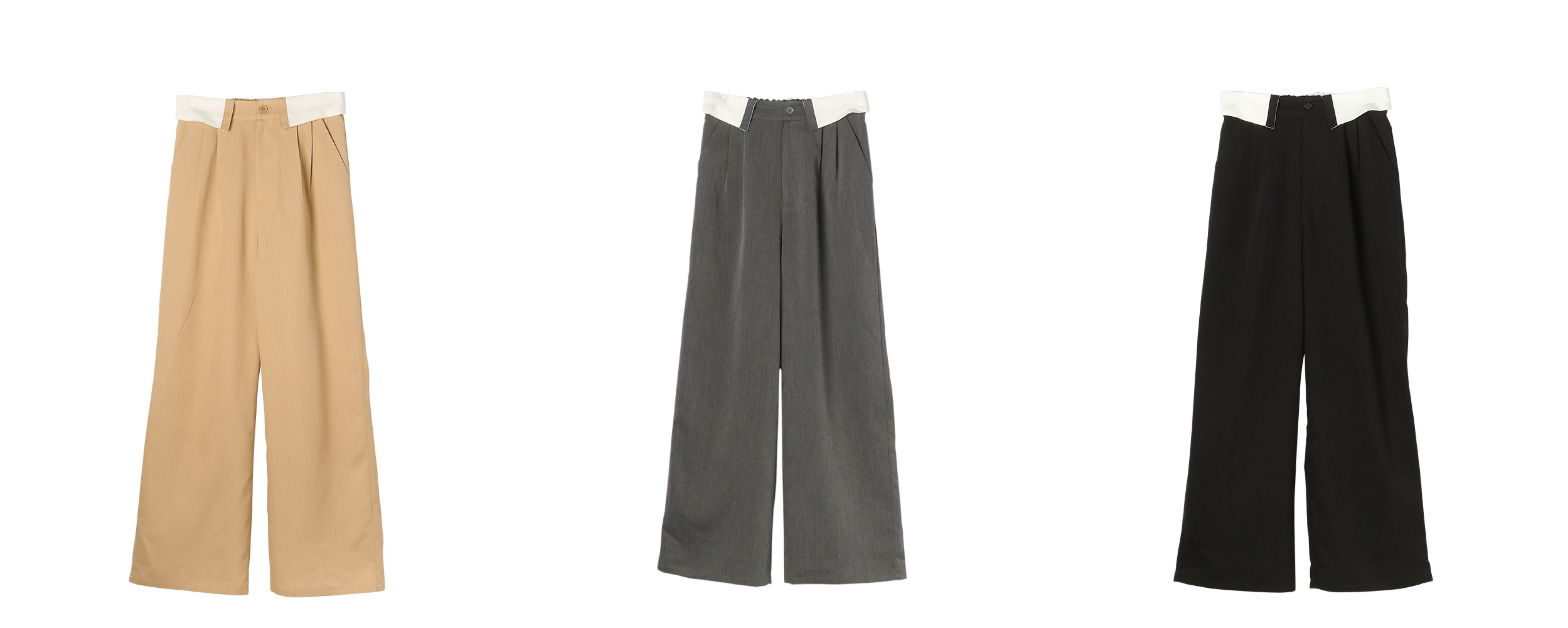 トレンドのウエスト折り返しデザインを取り入れたパンツ。