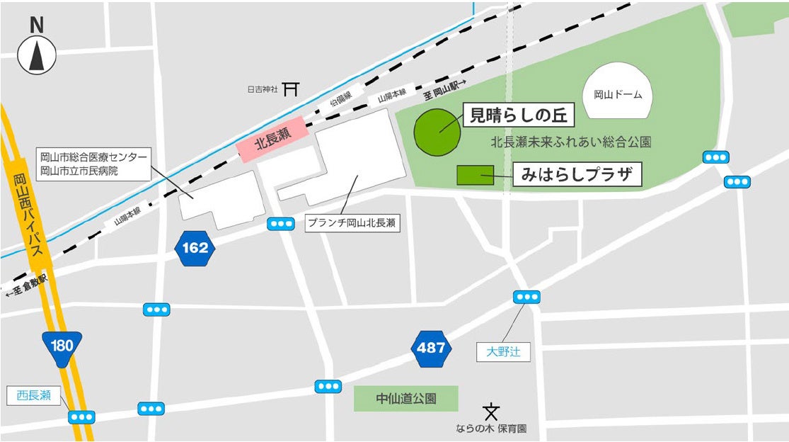 当社は隣接地で運営する複合商業施設「ブランチ岡山北長瀬」(JR北長瀬駅前、2019年6月オープン)と連携し、「with Park-共に創るみんなの森」をコンセプトに「多様な交流や活動機会の提供」「にぎわい・交流を促進するさまざまなイベントの実施」「くつろぎ、滞在する空間の提供」による日常的なにぎわいの創出を目指します。https://kitanagase-park.com/